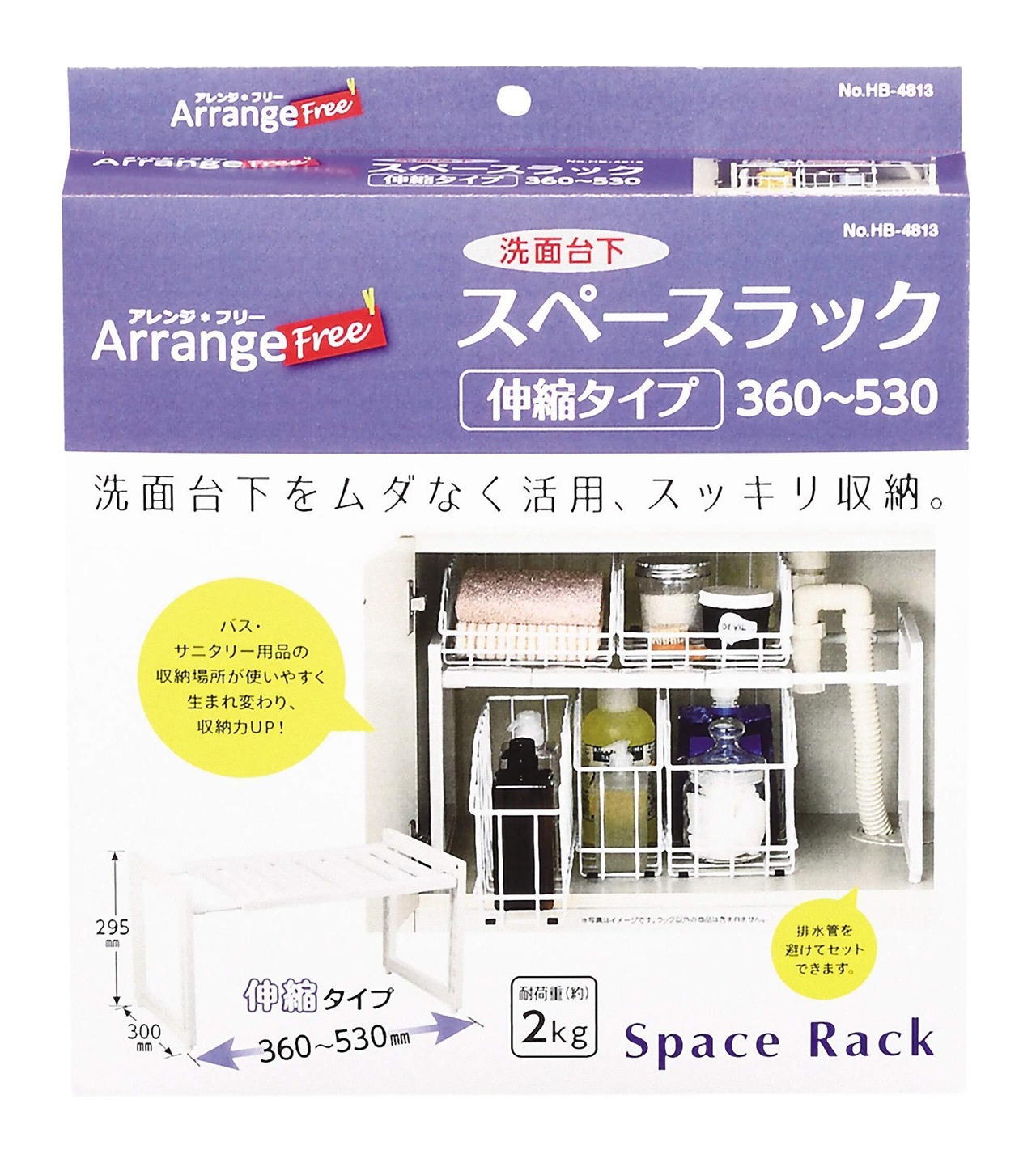 パール金属 洗面台下スペースラック ホワイト 360~530 伸縮タイプ アレンジフリー HB-4813