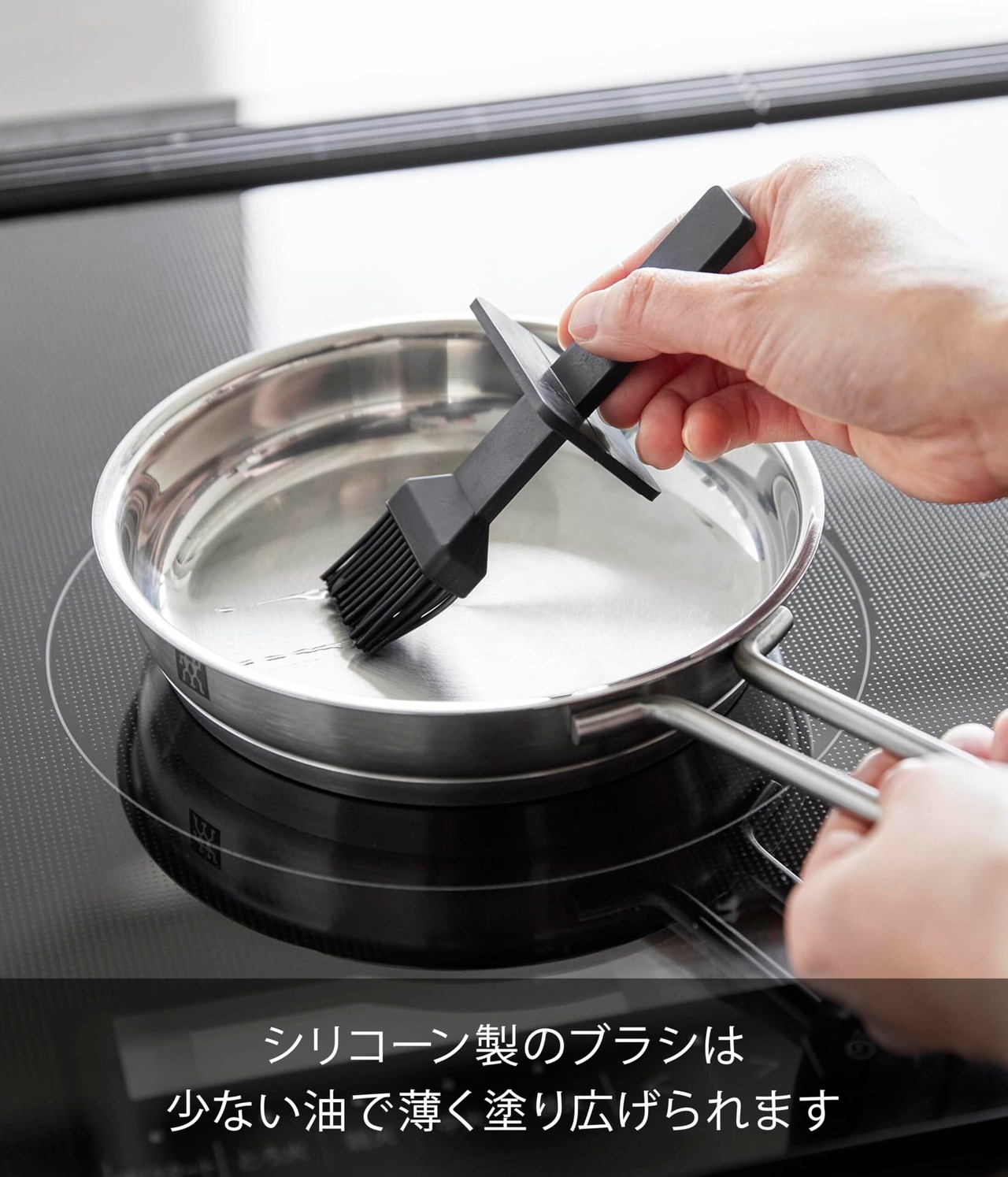 シリコーン製のブラシは少ない油で薄く塗り広げられます。
