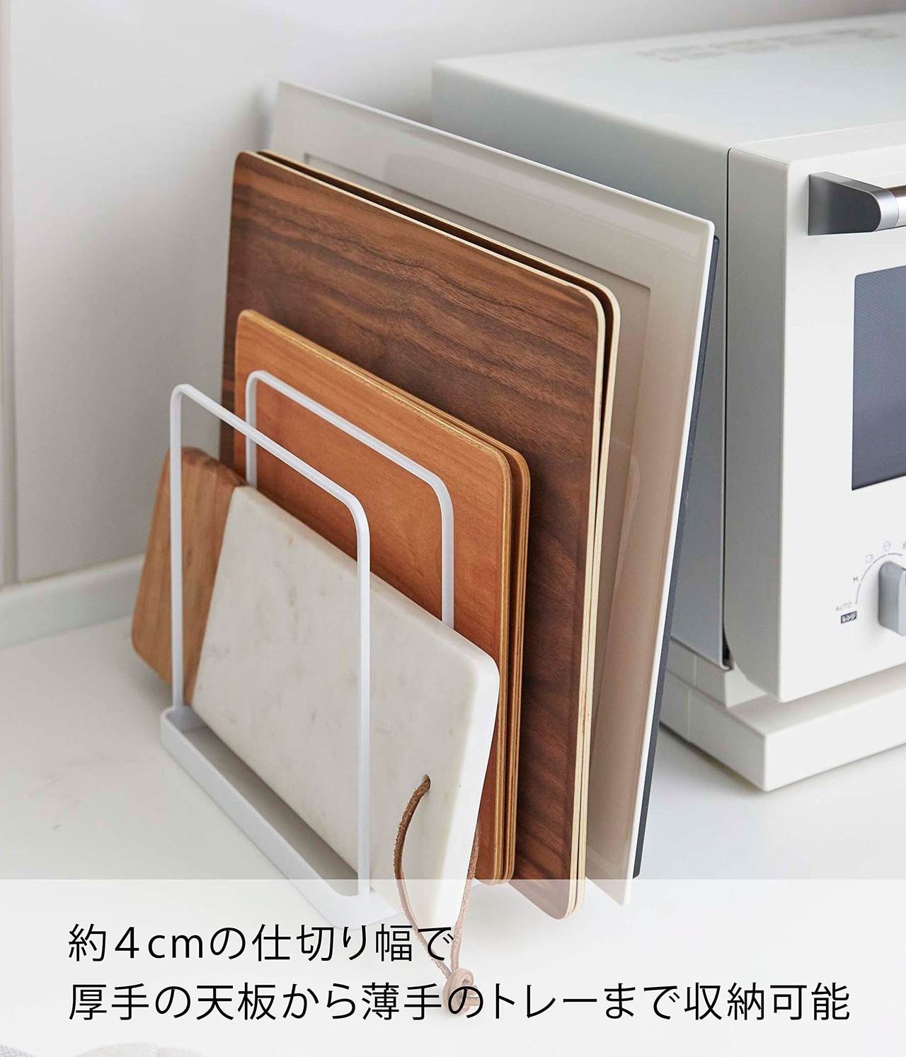 置き場所に困るキッチントレーやオーブン天板をキッチンの隙間に収納できるトレースタンド。