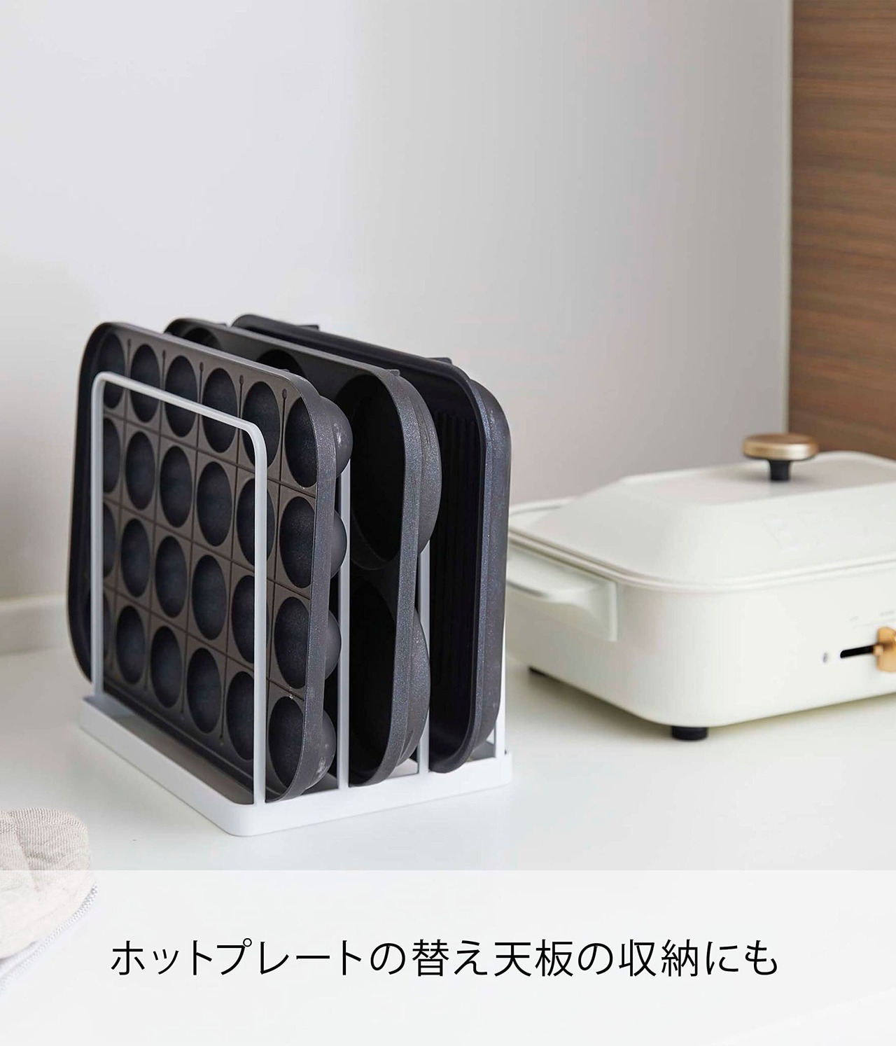 ホットプレートの替え天板の収納にも便利にお使いいただけます。