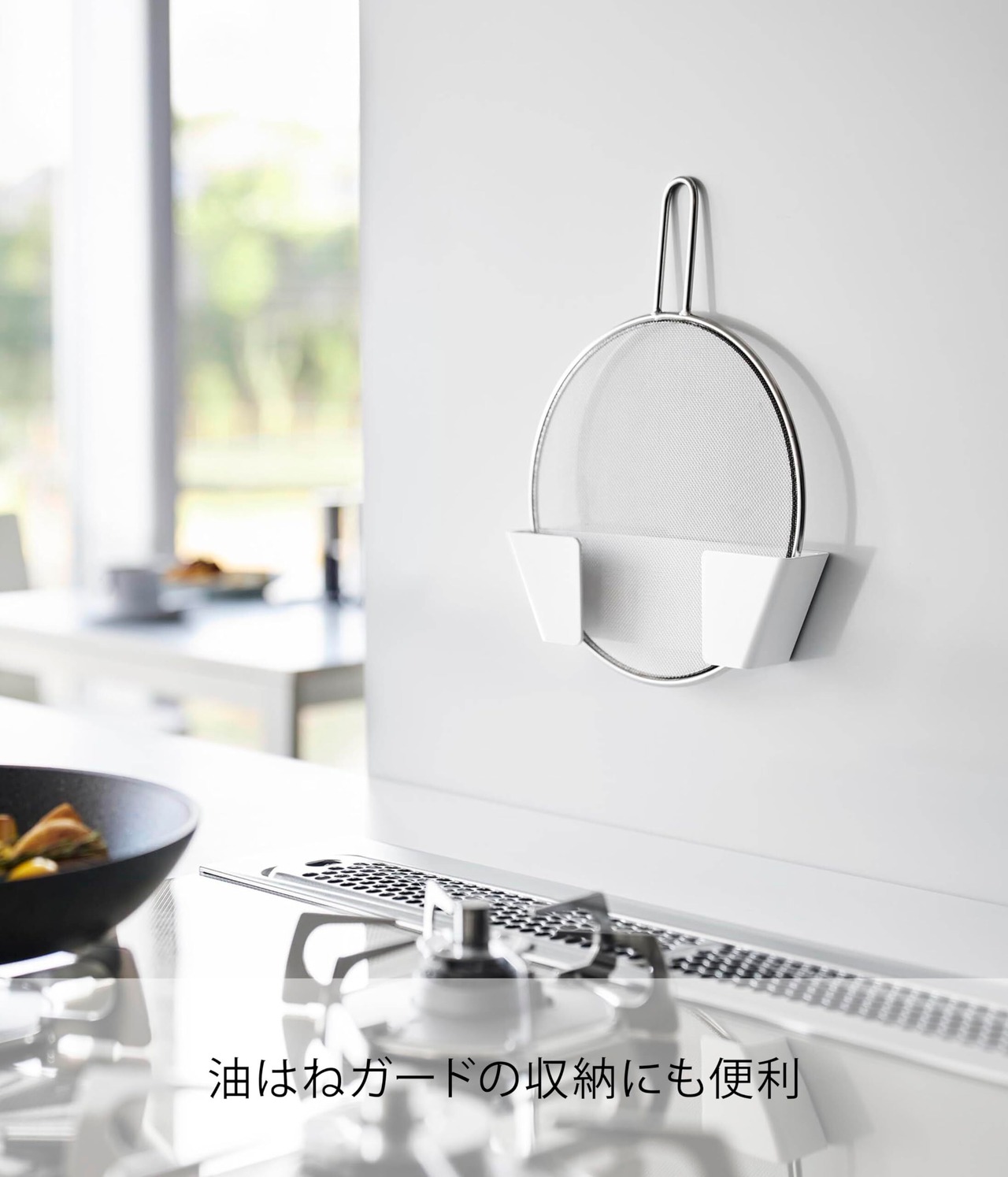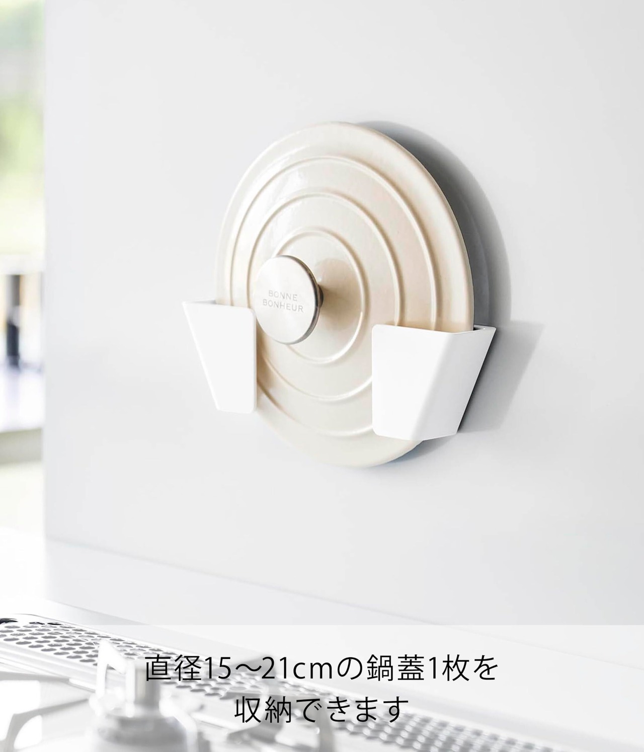 マグネットがつかない場所に設置でき調理スペースを広く使うことができる鍋蓋ホルダー。