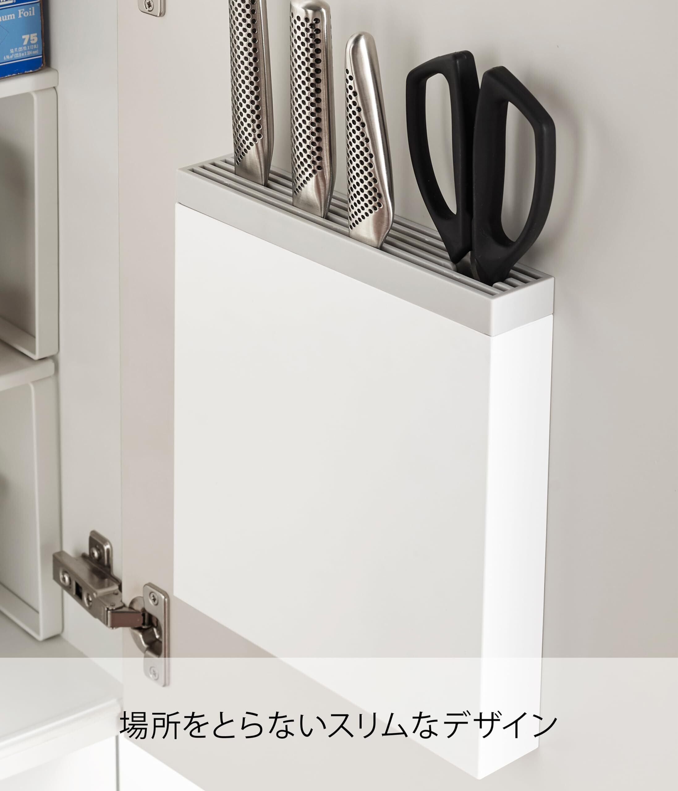 【特価商品】山崎実業 シンク下 包丁差し 洗いやすい着脱式カバー 包丁& キッチンばさみ差し プレート ホワイト 3843
