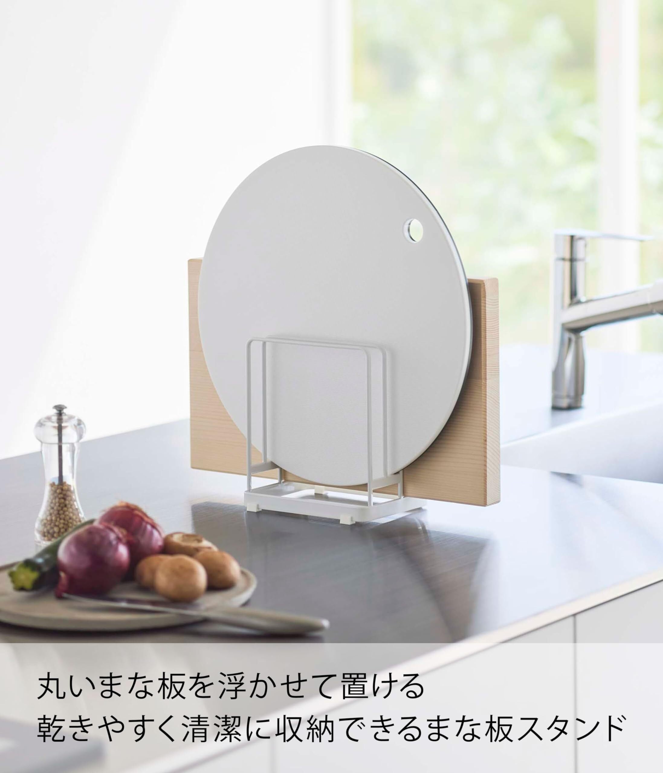 丸いまな板を浮かせて置ける! 乾きやすく清潔に収納可能。