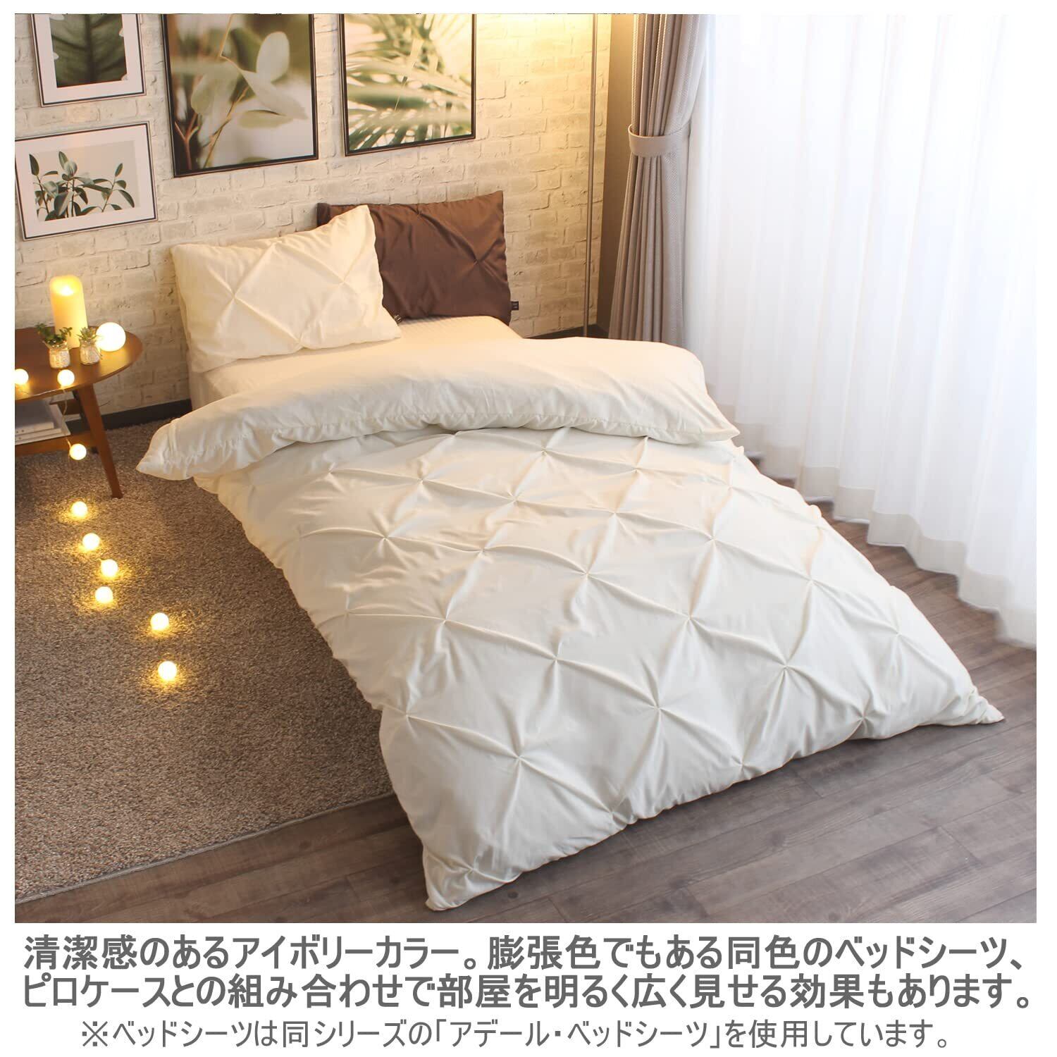 清潔感のあるアイボリーカラーはどんなお部屋にも合わせやすく、お部屋を明るく広く見せる効果もあります。ラグジュアリー感がある布団カバーはゲスト用にもおすすめです。