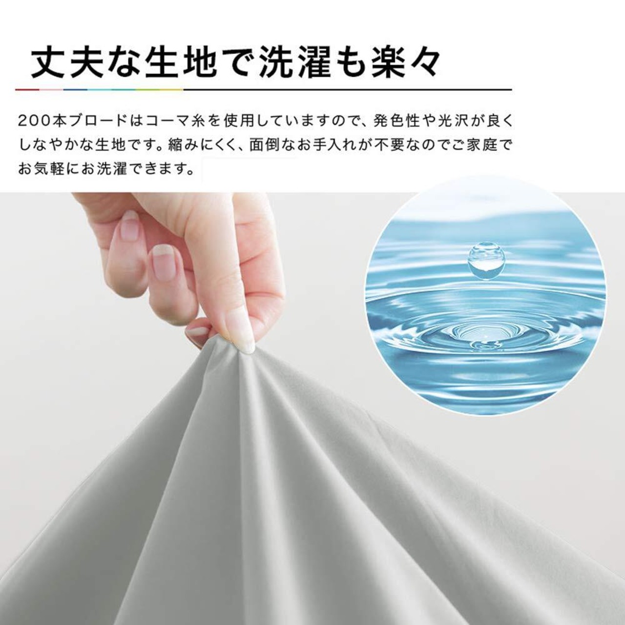【素材】天然素材綿100%。良質で高価な40番手の超極細糸を使用し、打ち込み本数は200本です。良質な綿を丁寧に織り上げることにより、肌ざわりのやさしい生地に仕上がりました。目詰みも良く、耐久性にも優れたしっかりとした生地です。
