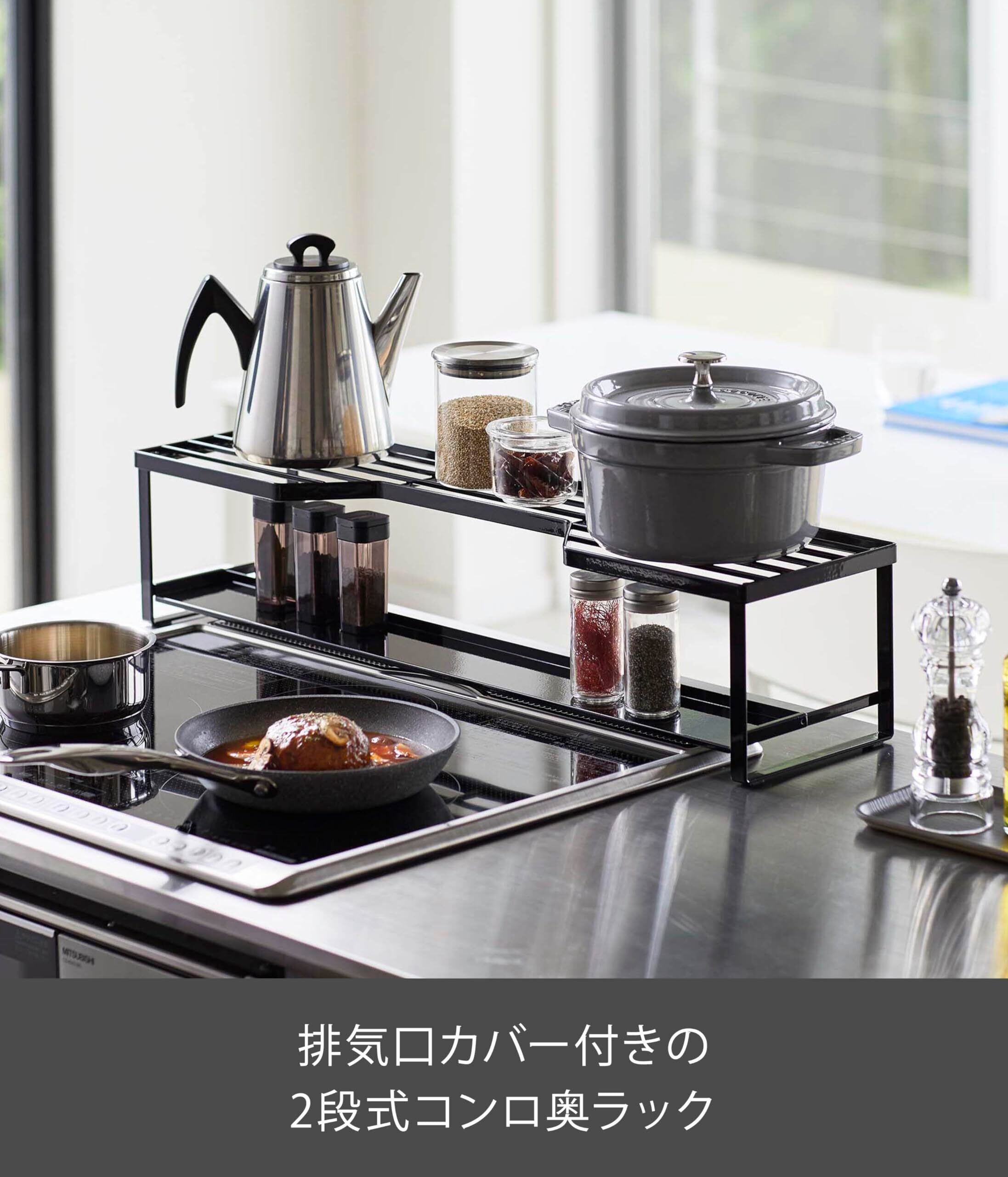【在庫処分】山崎実業(Yamazaki) コンロ奥ラック 排気口カバー付 60cmコンロ用 ブラック 約W70XD18XH15cm タワー tower スライド式 排気口カバー 棚付き 5269