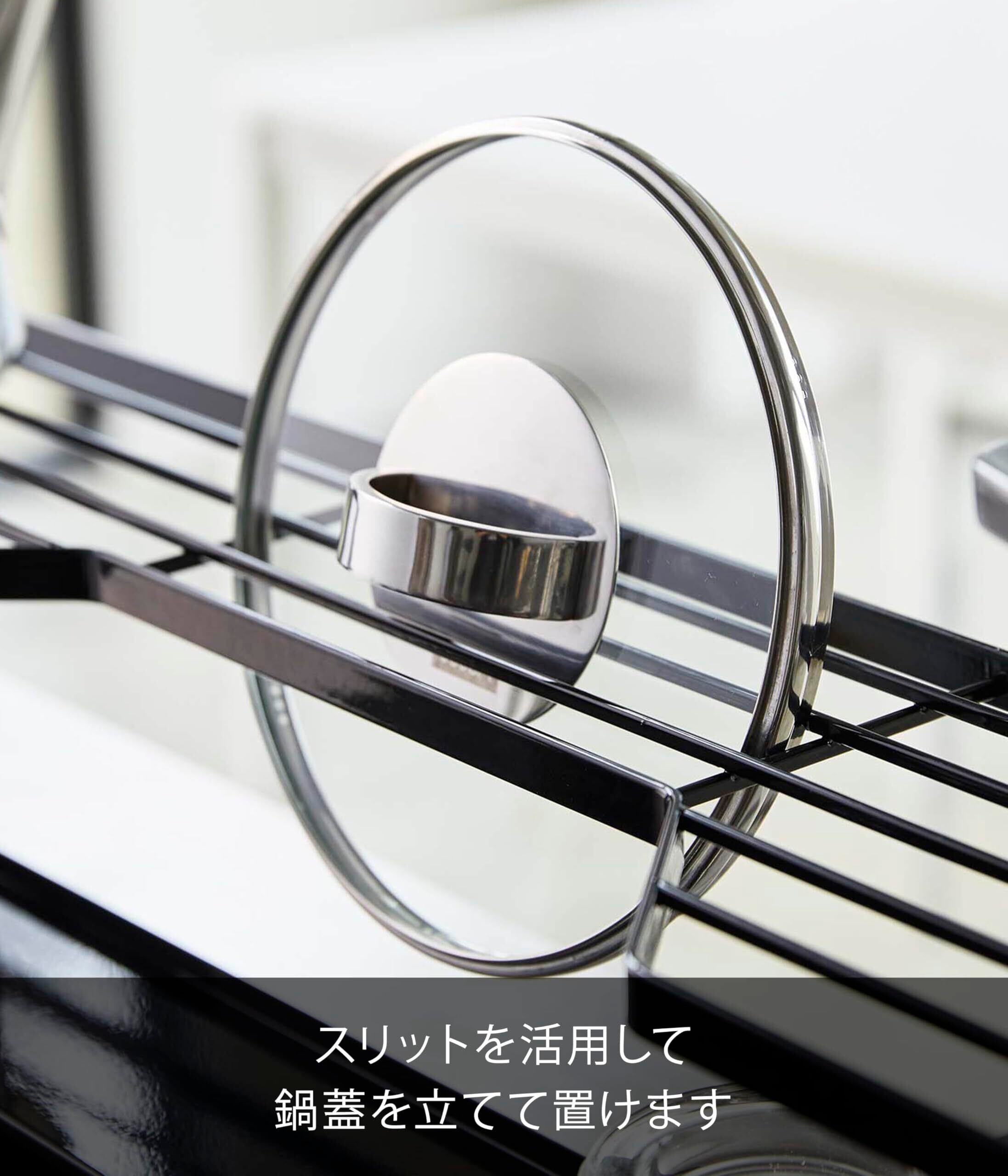鍋蓋を立てて収納できる天板。