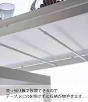 お使いのつっぱり棒にのせるだけの収納ラック!テーブルに穴を開けずに収納を増やせます。