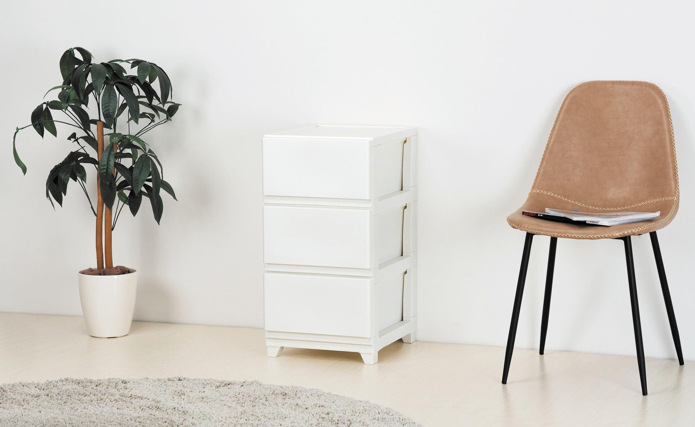 置き場所に困らない・スマートに収納できる スリムタイプ。中身が見えないすっきりデザイン・スッキリ閉まる引出し機構と抜け落ちストッパー付き。