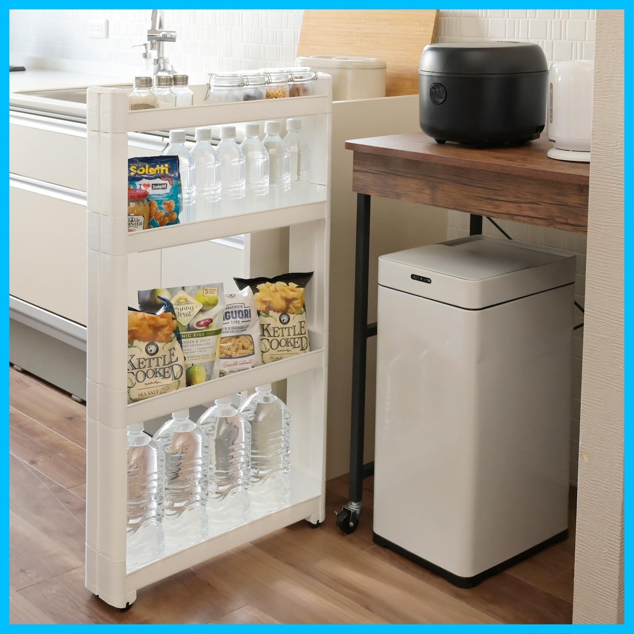【スリムなワゴン】冷蔵庫横のすき間や脱衣所の洗濯機横などのデッドスペースを収納スペースに活用できるスリムなワゴンです。