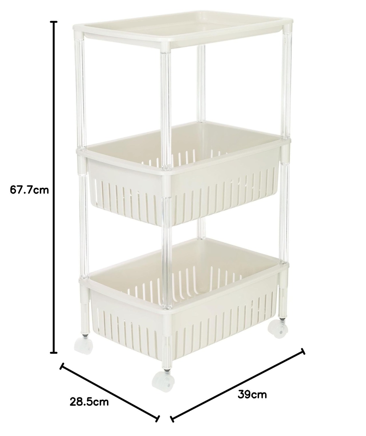 サンコープラスチック(SankoPlastic) すき間収納 ベージュ 約幅29×奥行39×高さ68cm テーブルワゴン 3段 ワイド