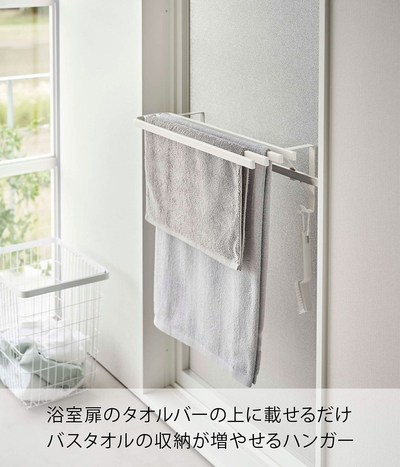 山崎実業(Yamazaki) 浴室扉 タオル掛け上 バスタオルハンガー ホワイト 約W57.5×D22.3×H17cm タワー tower バスタオルバー 簡単設置 パジャマ置き場 5999