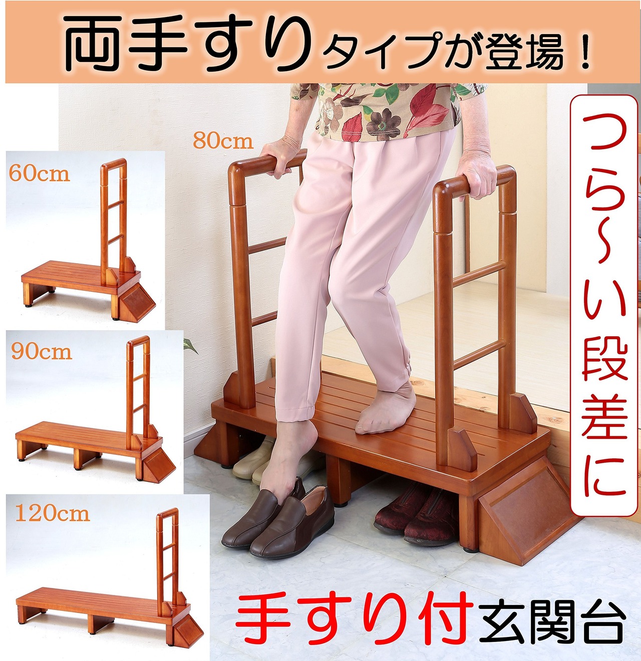 サイズ展開:60cm、90cm、120cm、80cm(80cmのみ両手すりタイプ)