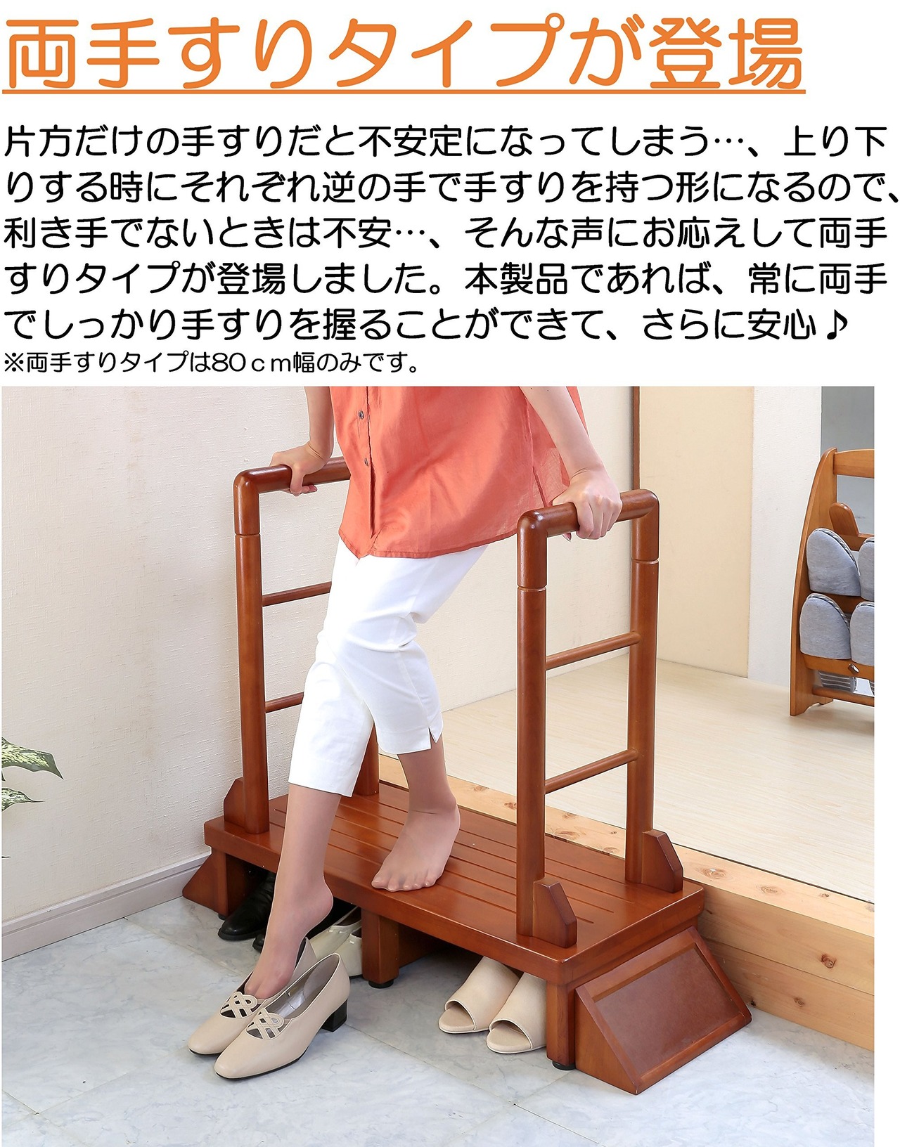 【数量限定】ビータ(Vita) 手すり付き玄関台 ブラウン 幅100×奥行35×高さ78cm 幅80cm つらい段差に 上り下り負担軽減 横倒れ防止 アジャスター付 スリップ防止