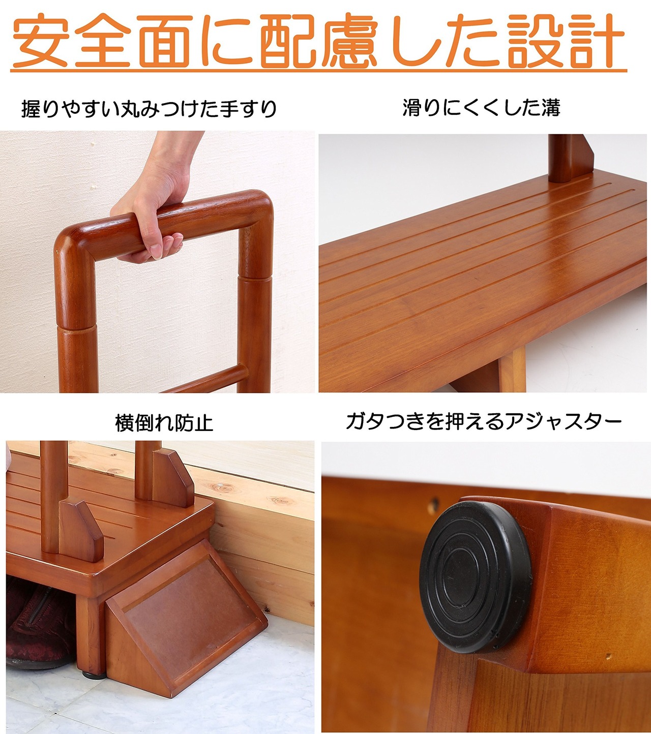 ビータ(Vita) 手すり付き玄関台 ブラウン 幅100×奥行35×高さ78cm 幅80cm つらい段差に 上り下り負担軽減 横倒れ防止 アジャスター付 スリップ防止