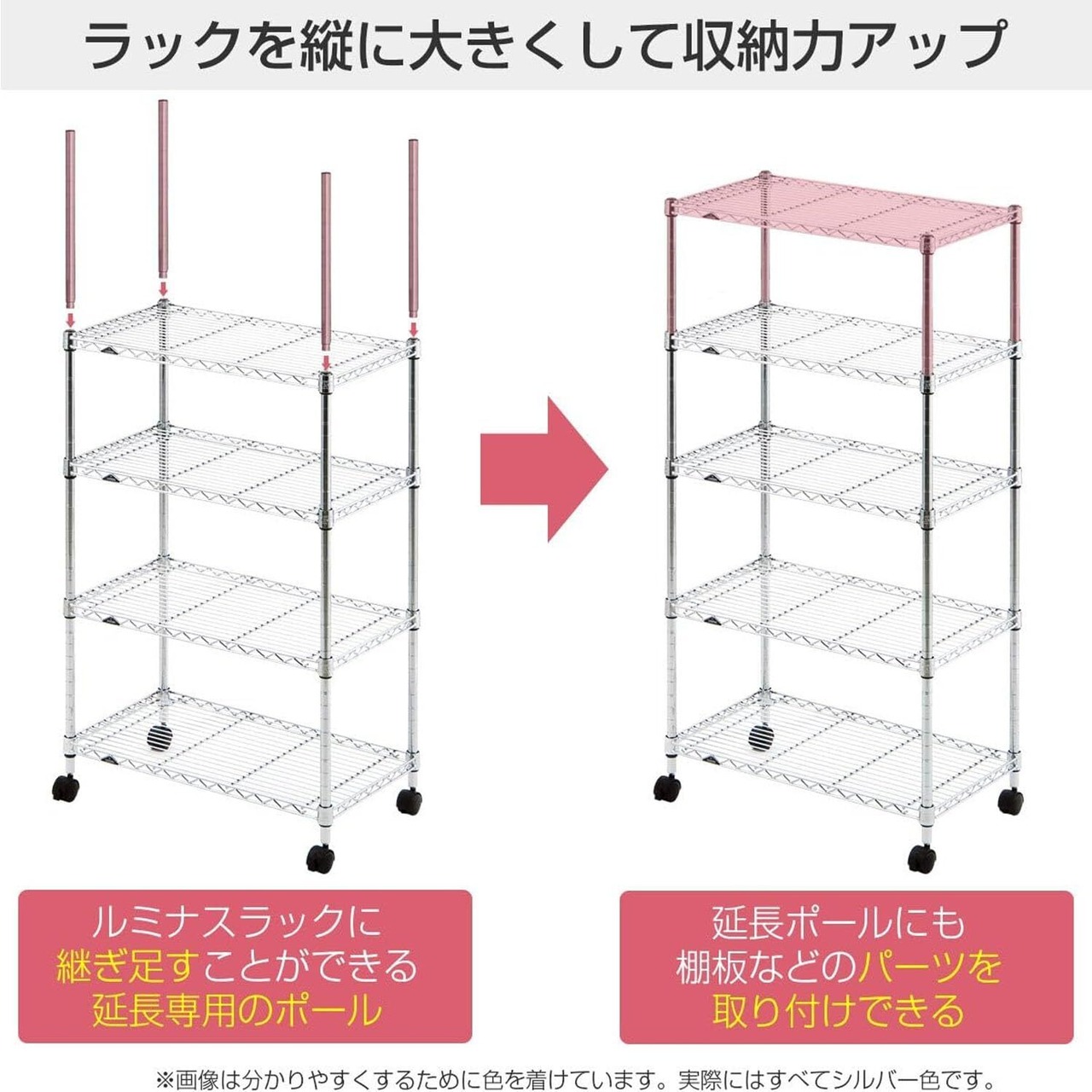 ドウシシャ ルミナス スチールラックパーツ 高さ延長ポール 支柱 2本セット ジョイント付き 高さ16cm ADD-1915 ポール径19mm 収納力アップ 追加パーツ diy 後付け 業務用 頑丈 防サビ加工 スリム 細身 取付簡単 高さ継ぎ足し