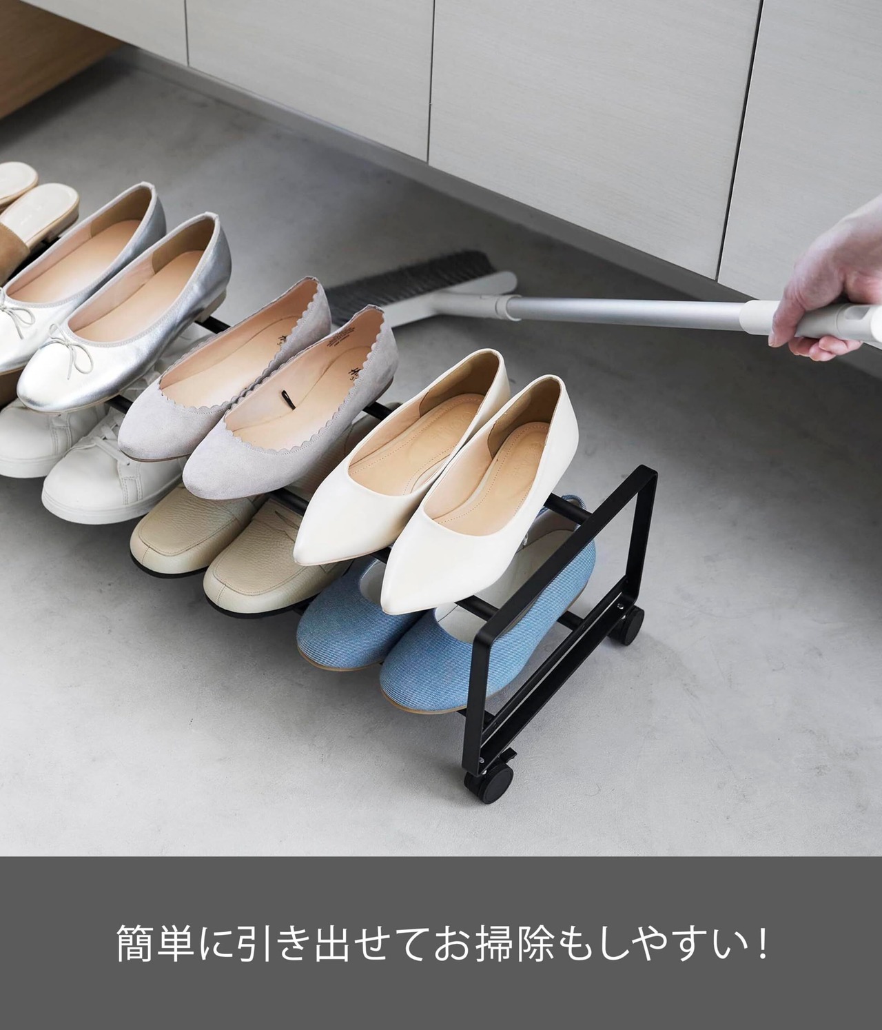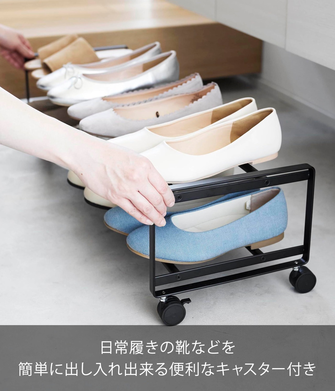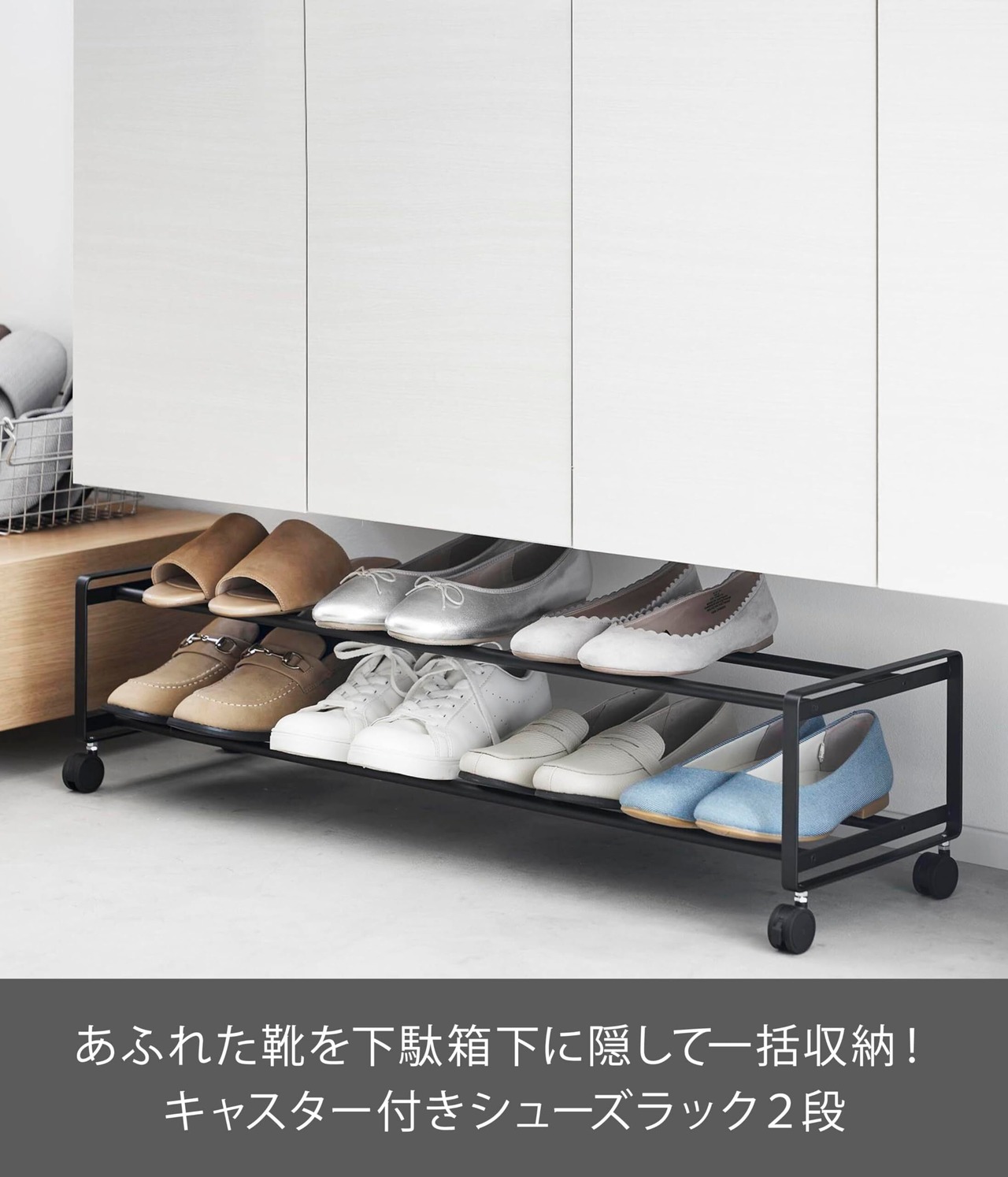 山崎実業(Yamazaki) 引き出せる キャスター付き シューズラック 2段 ブラック W83.5×D27.5×H20.7cm(キャスター含む) タワー tower 下駄箱下 収納ワゴン 玄関収納 1625