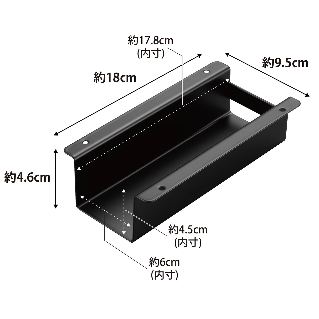 取り付け可能なテーブル:天板が木製・積層合板製で厚さが約1.3cm以上あり天板裏の約W9.5×D18cm以内に干渉する柱や脚がないテーブル。 ※天板裏に幕板(脚と脚をつないでいる板)がある場合、あらかじめハンディモップやリモコンの出し入れの際に干渉しない位置をご確認ください。