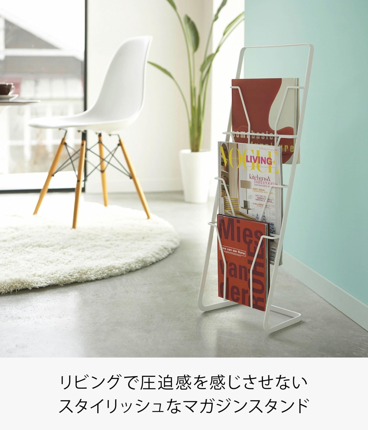 リビングで圧迫感を感じさせないスタイリッシュなマガジンスタンド。