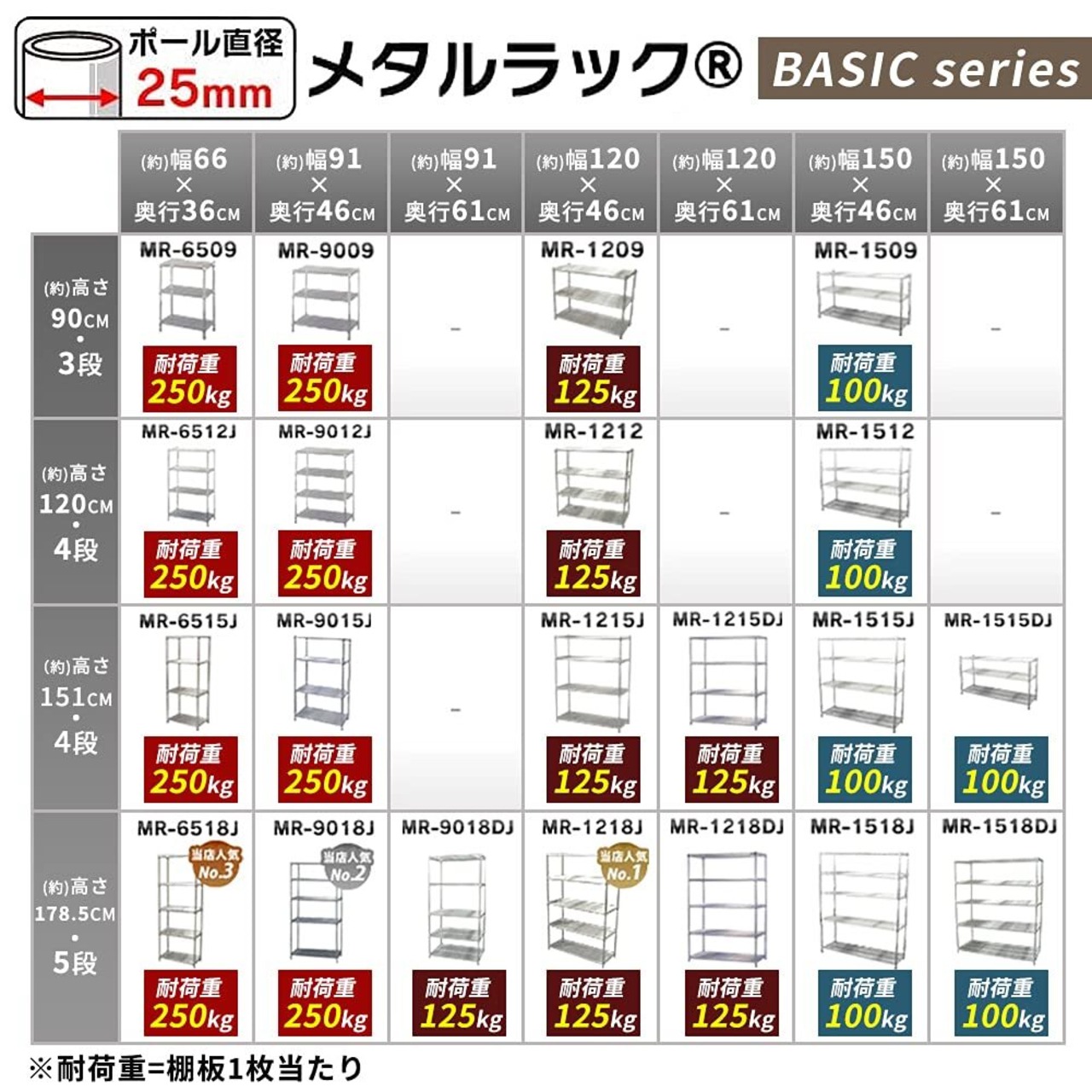 ●クロムメッキ仕上げのラックです。●棚の高さは自由に変えることができます。●MR-1509~MR-1518DJは幅約150cmと収納力に優れています。