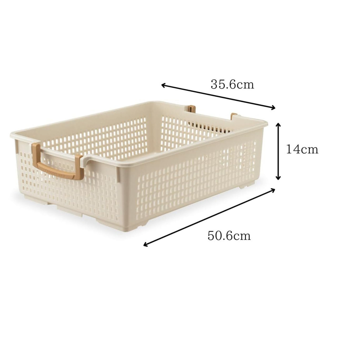 【特価セール】伊勢藤(ISETO) 衣類収納 フリーバスケットL アイボリー 幅35.6×奥行50.6×高さ14.0cm 日本製 取っ手付き 積み重ね可能 収納ケース 小物 衣類 大型 I-288-2