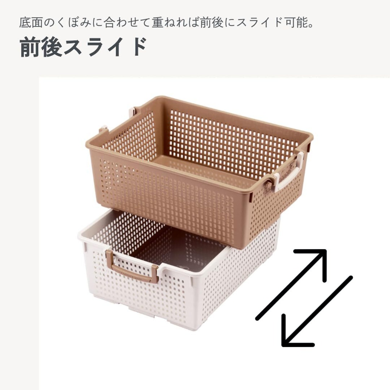 伊勢藤(ISETO) 衣類収納 フリーバスケットL アイボリー 幅35.6×奥行50.6×高さ14.0cm 日本製 取っ手付き 積み重ね可能 収納ケース 小物 衣類 大型 I-288-2