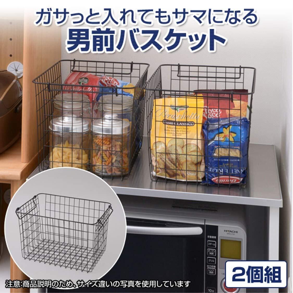 山善(YAMAZEN) ワイヤーバスケット 浅型タイプ(幅37 高さ12cm) 2個組 ブラック RWB-321(BK)*2