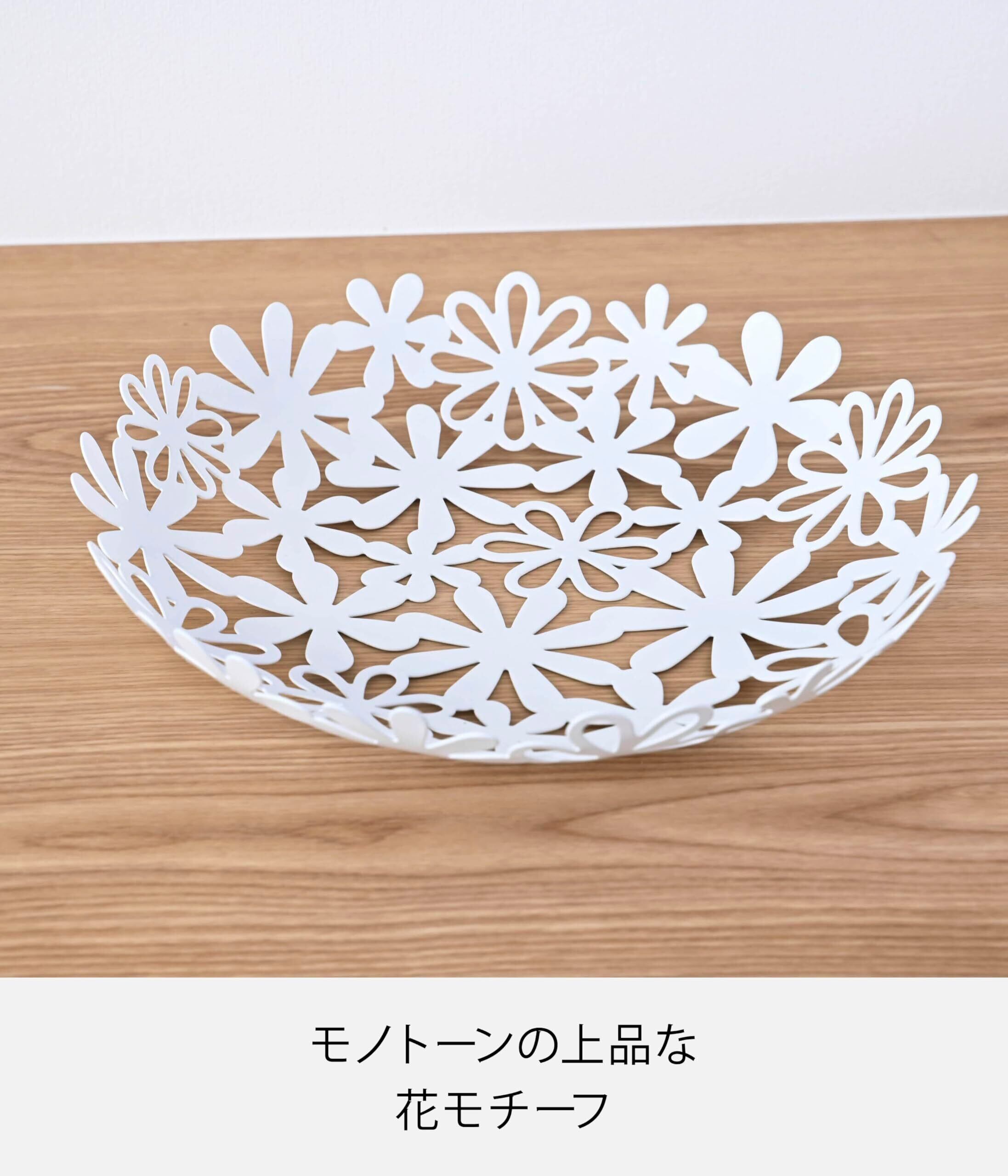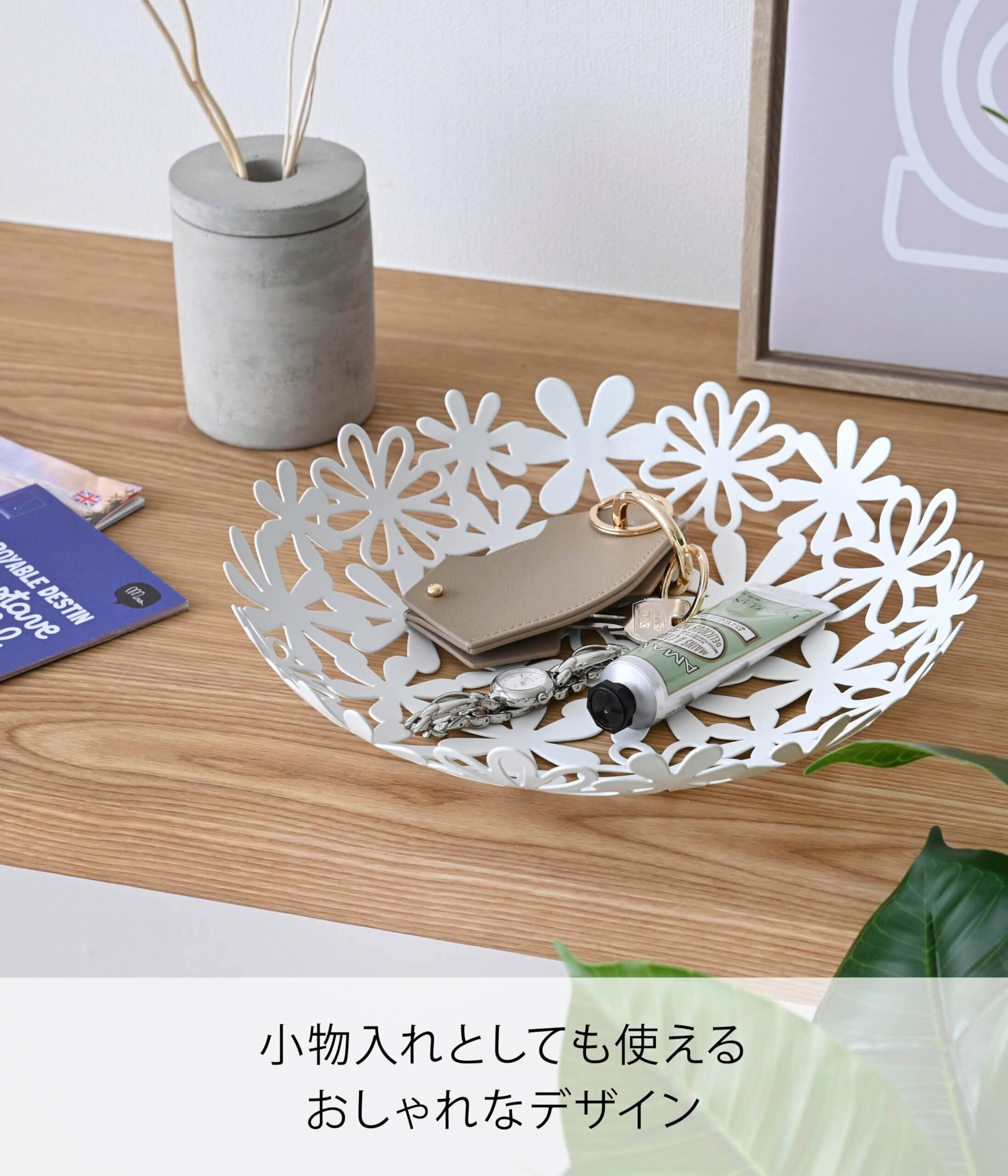 山崎実業(Yamazaki) フラワーバスケット ホワイト 約W25×D25×H5cm フルーツボウル 果物 卓上 6973