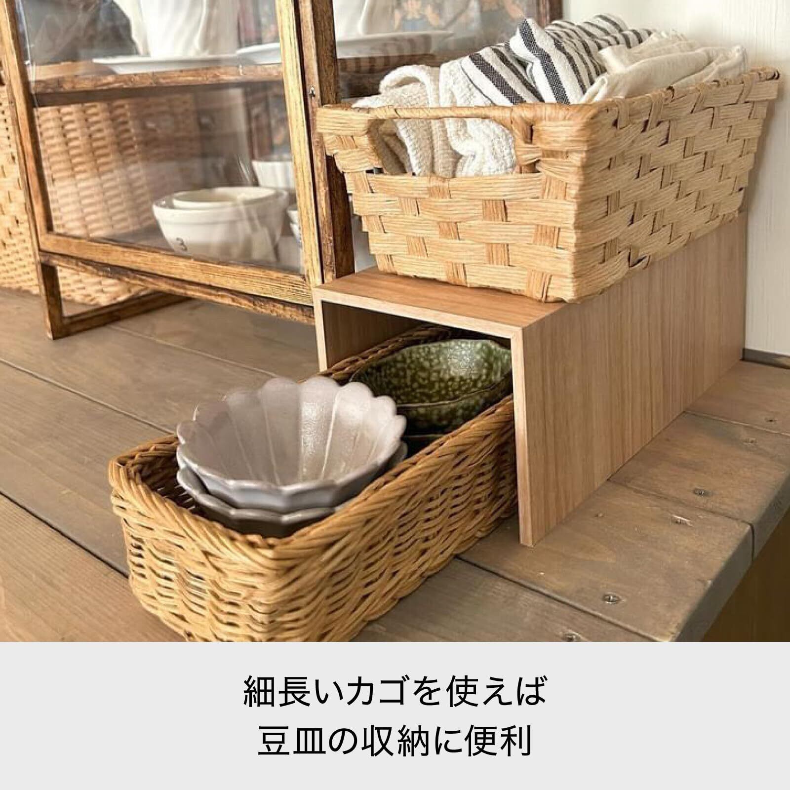 ライクイット (like-it) 卓上収納 コの字ラック プラスラック ミドル 約幅12.2x奥25x高9.5cm ナチュラル 日本製 RA-03 デッドスペース活用 デスク 棚 木目調シート 食器棚収納 キッチン棚
