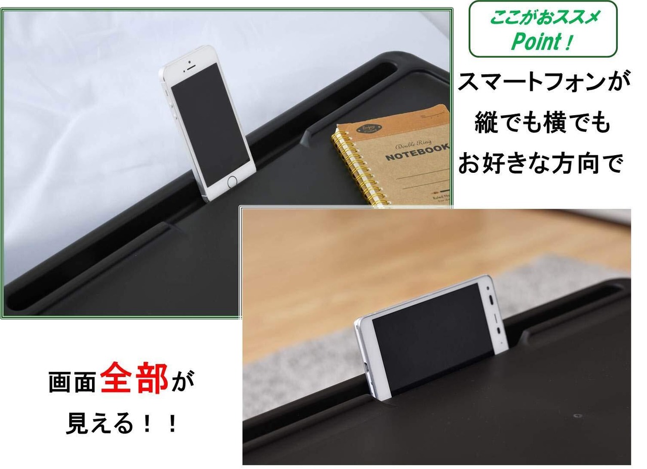 山善(YAMAZEN) 折りたたみ ミニテーブル 幅63×奥行35×高さ25cm コンパクト スマートフォンスタンド付き 完成品 ブラック CFT-5035(BK) 在宅勤務