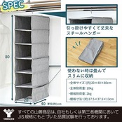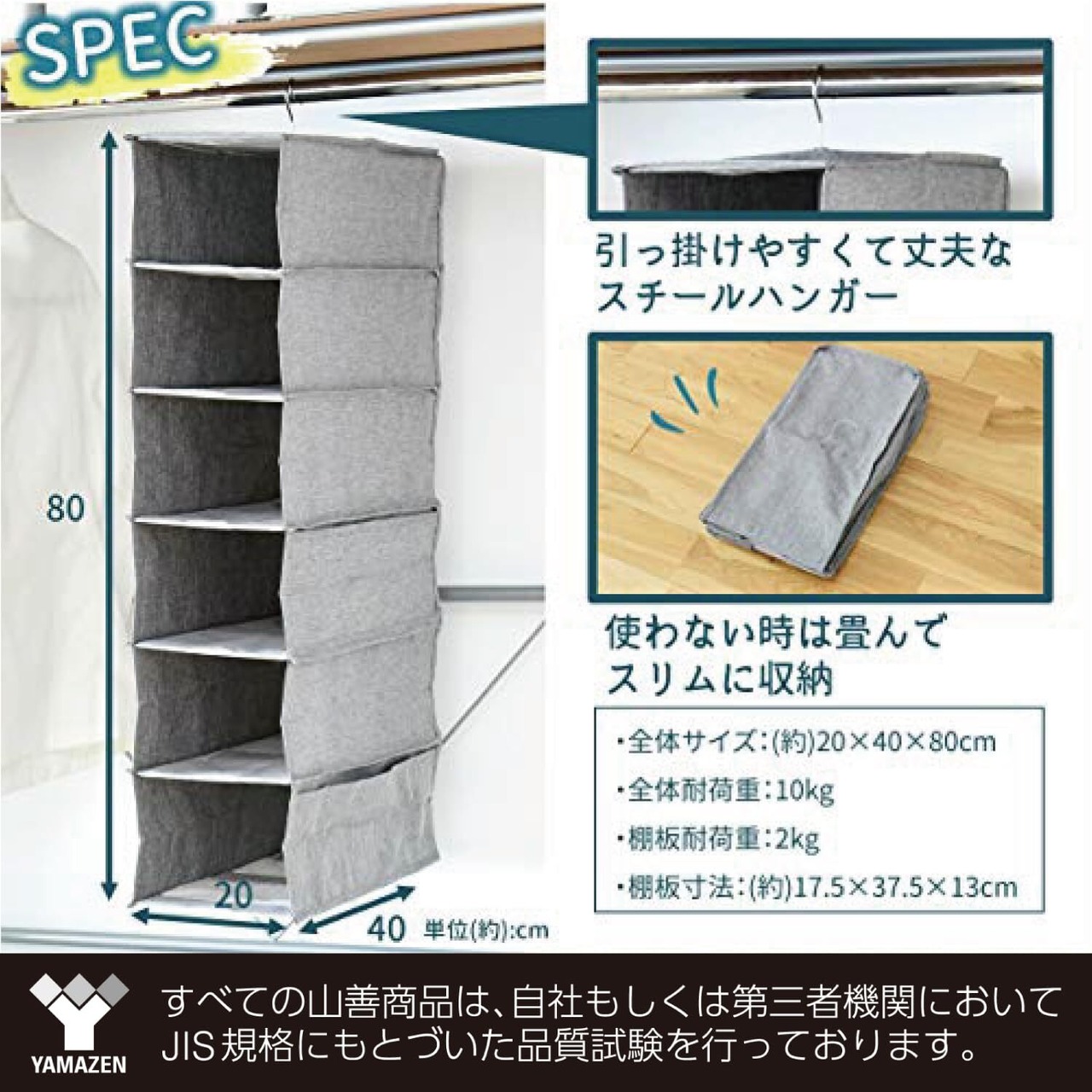 山善(YAMAZEN) 吊り下げ収納 Sサイズ 頑丈な棚板 サイドポケット スチールハンガー(引っ掛けやすく頑丈) ハンギングラック クローゼット 入院 出張 車 便利グッズ 完成品 グレー YTCK-CLHRS(GY) 本体サイズ:幅20×奥行40×高さ80cm