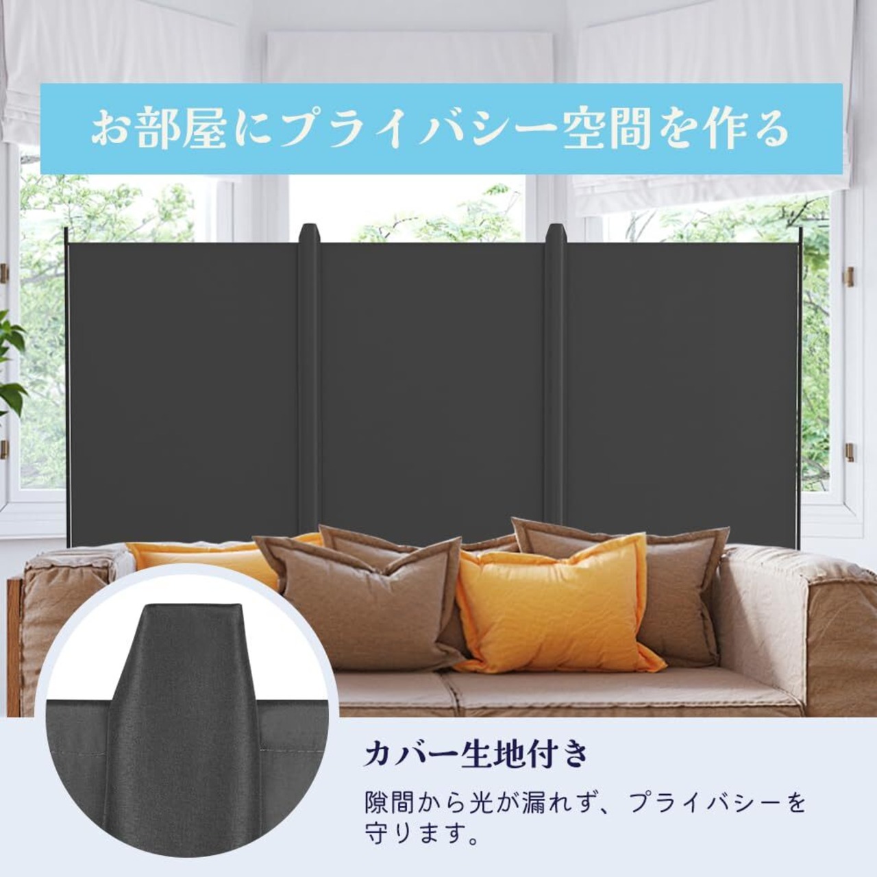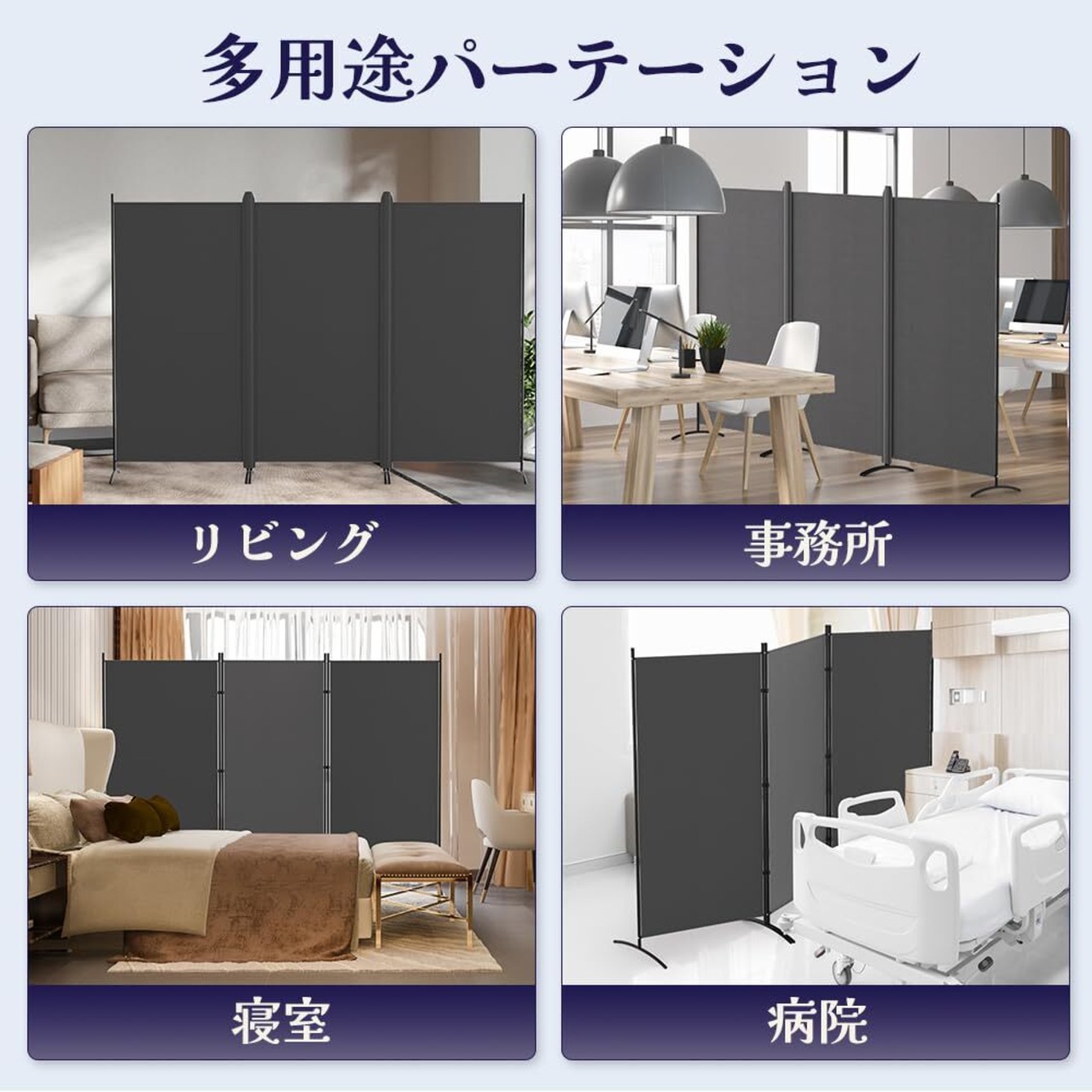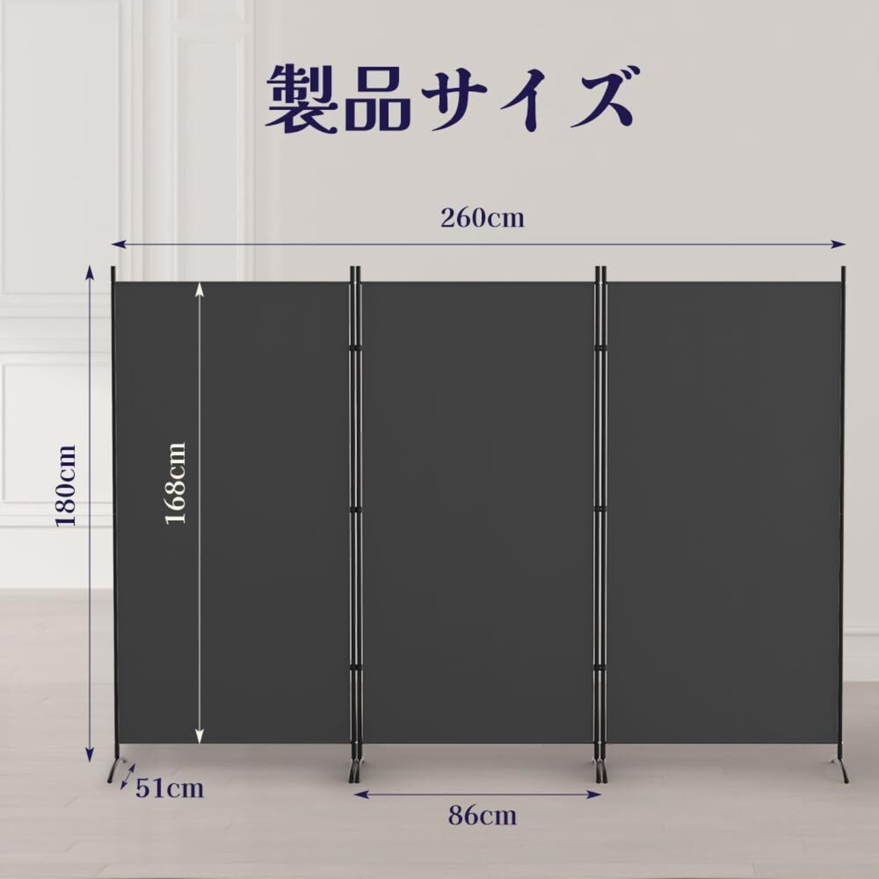 組み立て簡単:全体サイズ:高さ180 cm×幅260 cm。カラー:ブラック。おしゃれ衝立は防水生地でできており、お手入れも簡単です。取り付けも簡単で、1人で20分以内に部屋パーテーションを組み立てることができる。屏風についてご不明な点がございましたら、お気軽にお問い合わせください、はできるだけ早く問題を解決するお手伝いをいたします