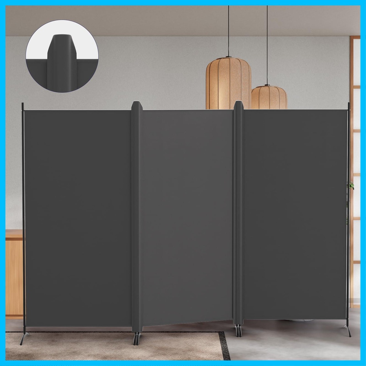 KELIXU パーテーション 間仕切り 3連 自立式 衝立 カバーストリップ付き 高さ1.8m×幅2.6m 布タイプ 折りたたみ 仕切りパネル 軽量 クロスパーテーション 目隠し 屏風 おしゃれ 組み立て簡単 部屋 オフィス 会議室 (ブラック)