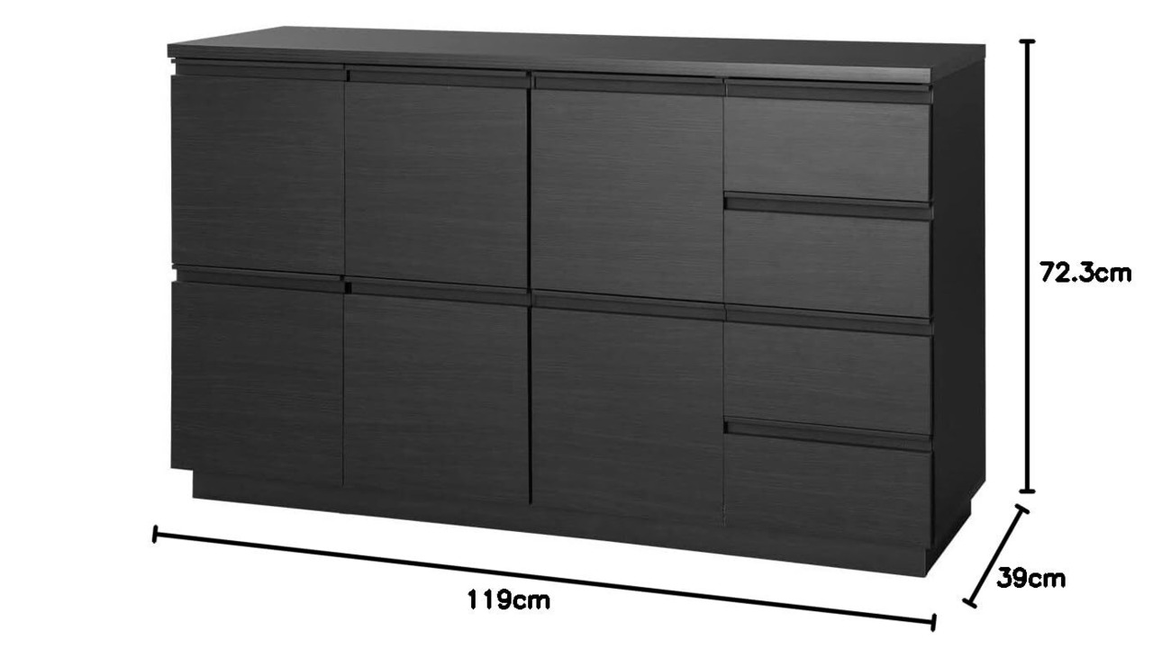 製品サイズ(cm):本体外寸…幅約119×奥行約39×高さ約72.3/引き出し内寸…幅約22.4×奥行約33.6×高さ約6.2
