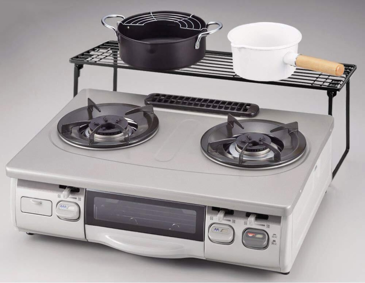 据え置きタイプ(ガス・IH)のコンロ奥スペースを有効利用。鍋やフライパンのちょっと置きに便利