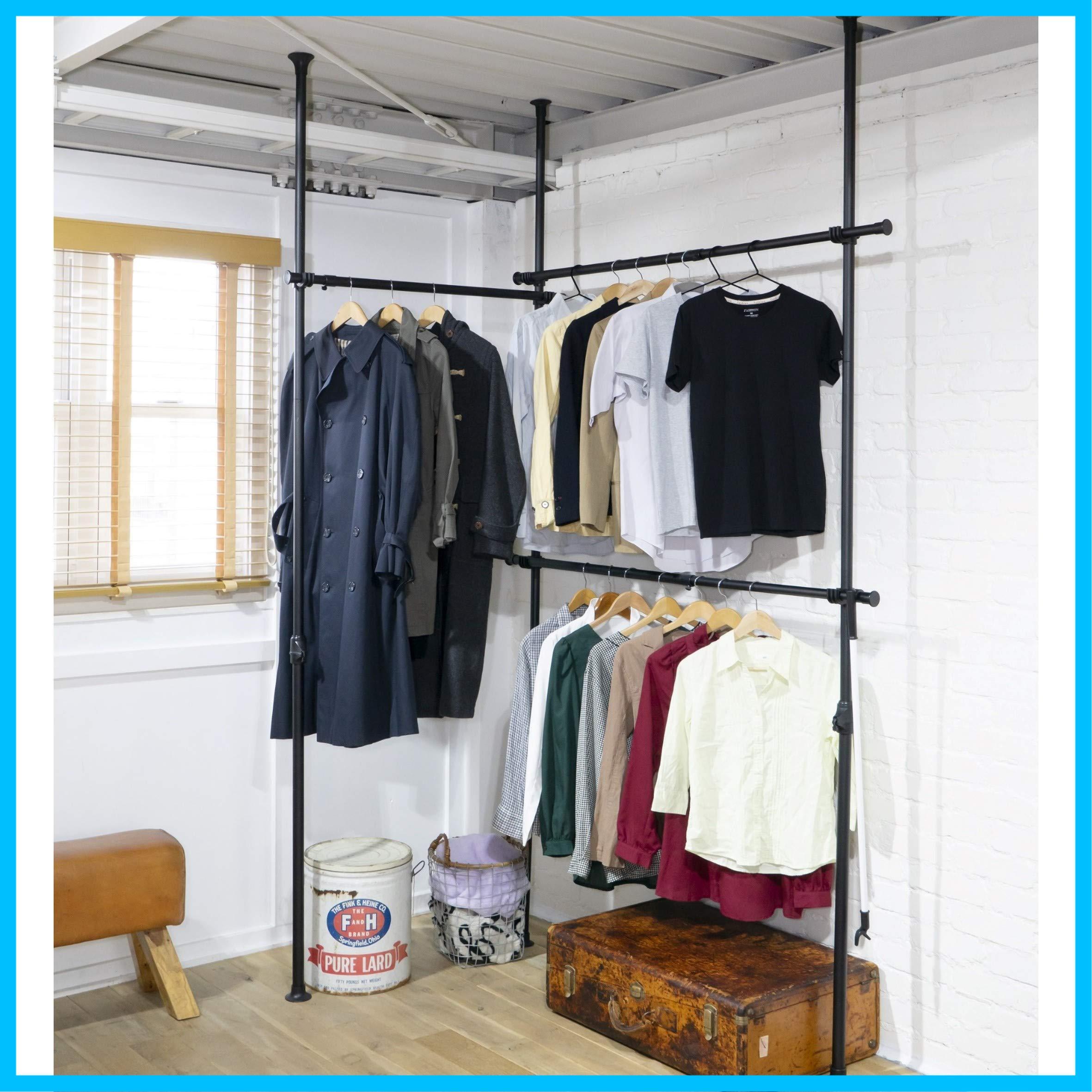 山善(YAMAZEN) 突っ張り ラック ポールハンガー ハンガーラック 全体耐荷重90kg シャツ最大135着 ひっかけ棒付き ワンタッチ突っ張り (実用新案取得済) 縦横伸縮 (幅160-292cm/高さ190-260cm) 衣類 収納 組立品 マットブラック WJ-795RM(MBK) トリプル