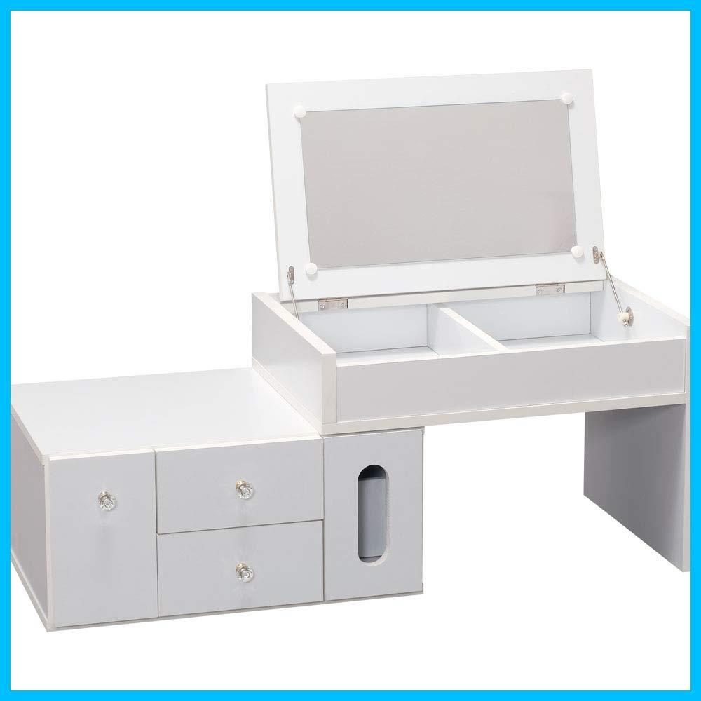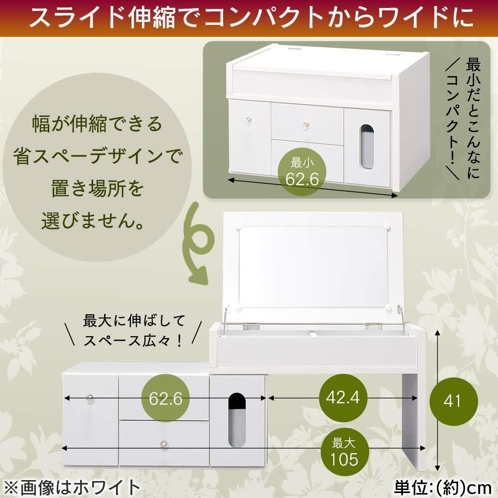 アイリスプラザ 鏡 ドレッサー 白 ロータイプ コンパクト 化粧台 鏡台 メイク台 幅伸縮可 収納 大容量 収納デスク 机 ローデスク 幅62.6~105×奥行約44×高さ約41㎝ ホワイト