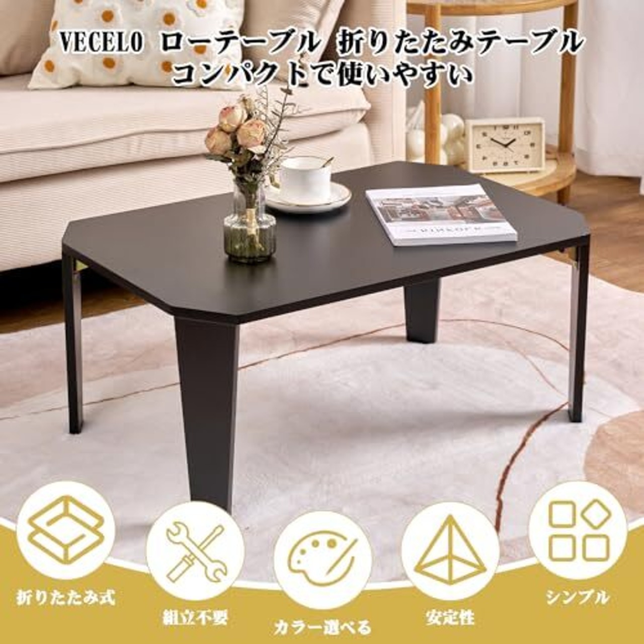 VECELO ローテーブル 折りたたみテーブル 幅75×奥行50×高さ33cm ブラック ベッドテーブル ミニテーブル 省スペース コンパクト 一人暮らし シンプル