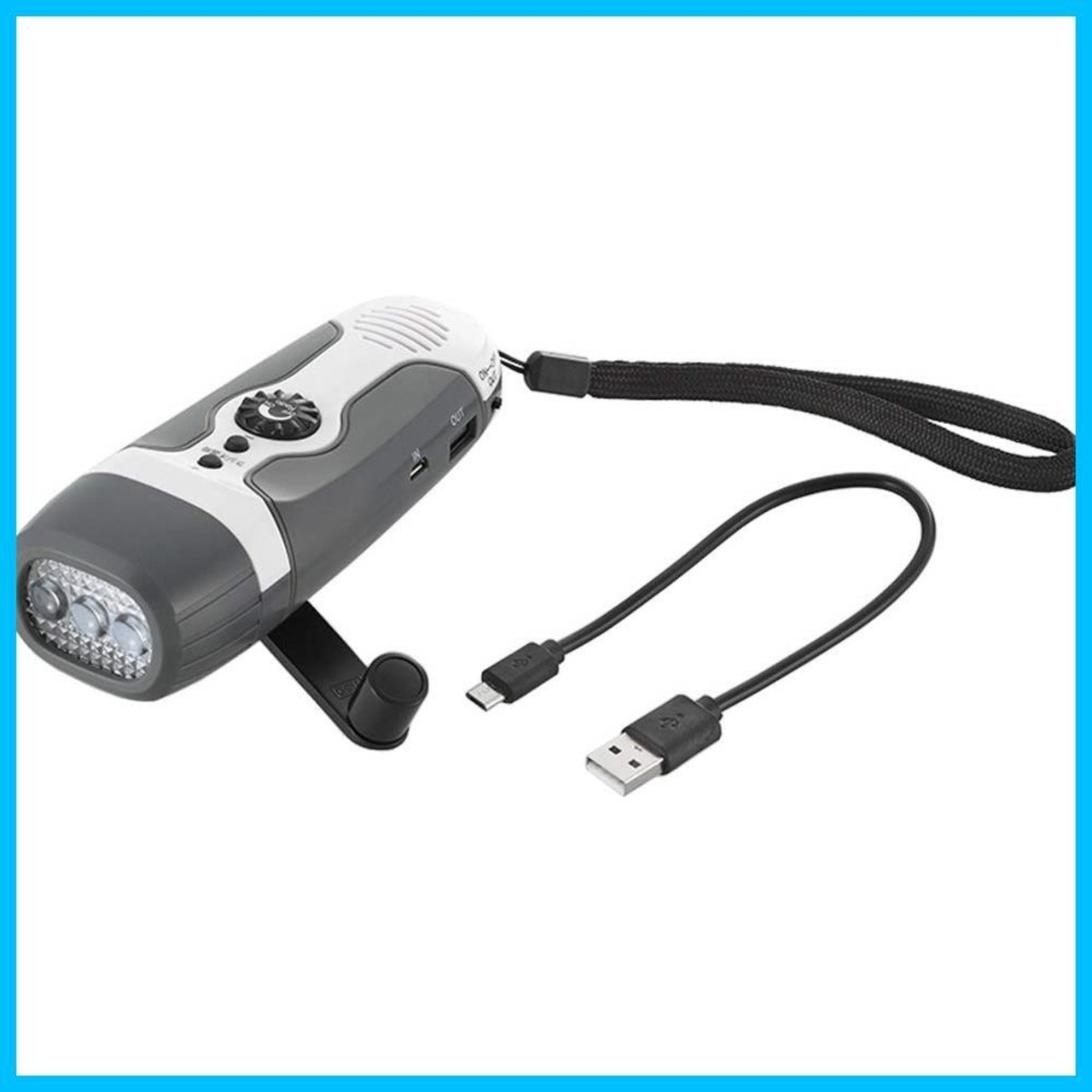 3灯LEDライト・FMラジオ(ワイドFM対応)・サイレン・スマートフォン充電(マイクロUSB)・手回し充電・USB充電