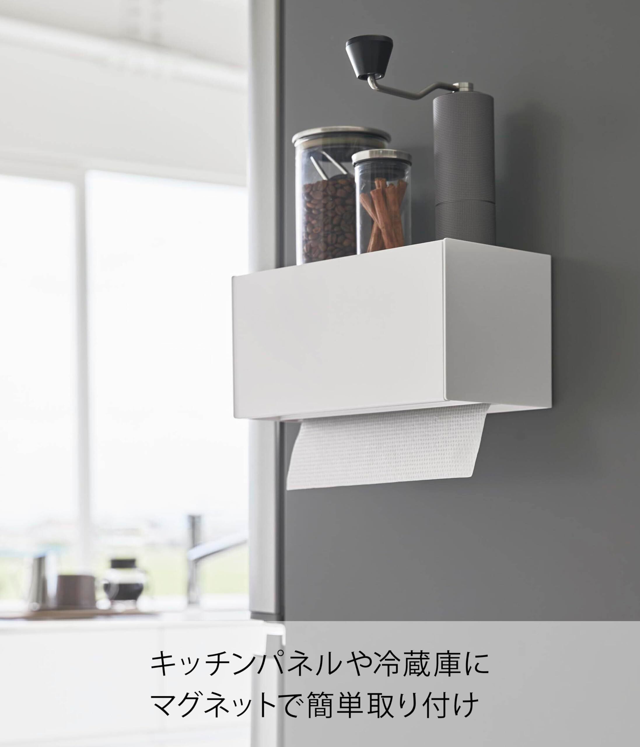 山崎実業(Yamazaki) マグネット トレー付き ペーパータオル ディスペンサー ホワイト 約W26×D13.7×H13.6cm(蓋開口時:約H26.3cm) タワー tower ペーパータオルケース ペーパータオルホルダー 片手で取りやすい 2192