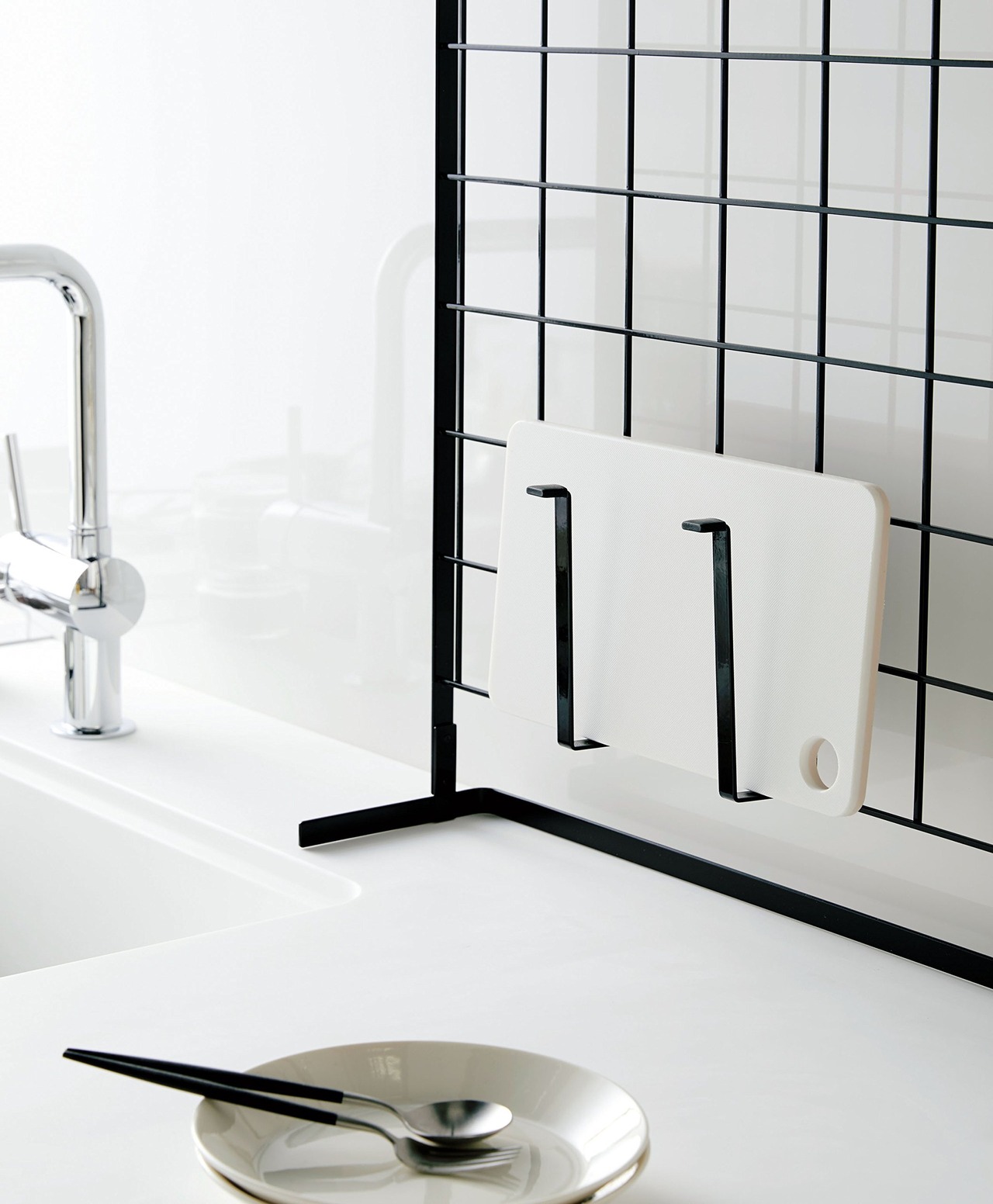山崎実業 シンク上収納 まな板スタンド まな板立て 自立式メッシュパネル用 まな板ハンガー タワー ブラック 4198