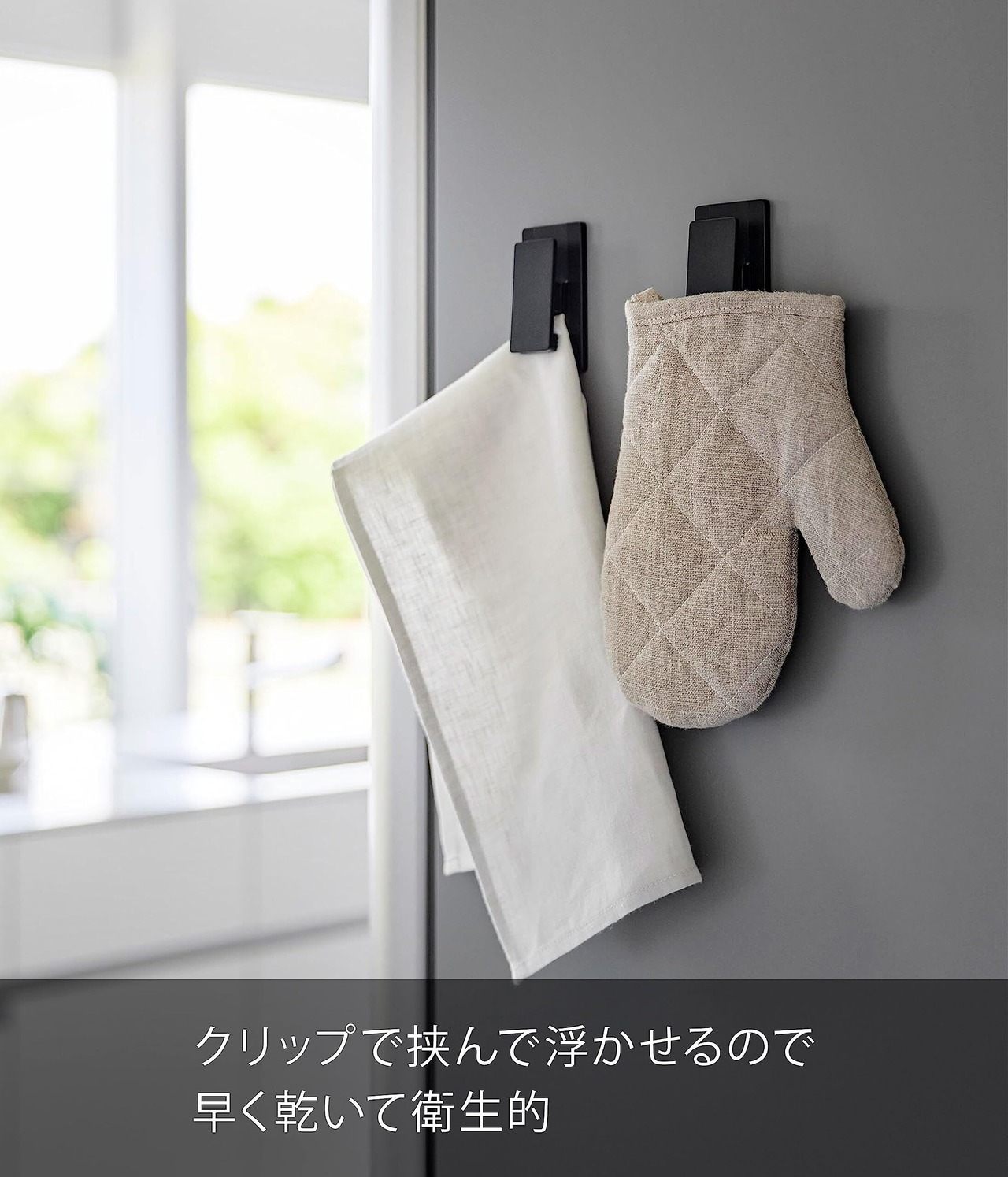 【在庫セール】山崎実業(Yamazaki) マグネットクリップ 2個組 ブラック 約W4.5×D2×H8cm タワー tower 布巾かけ キッチン収納 簡単取付 3670
