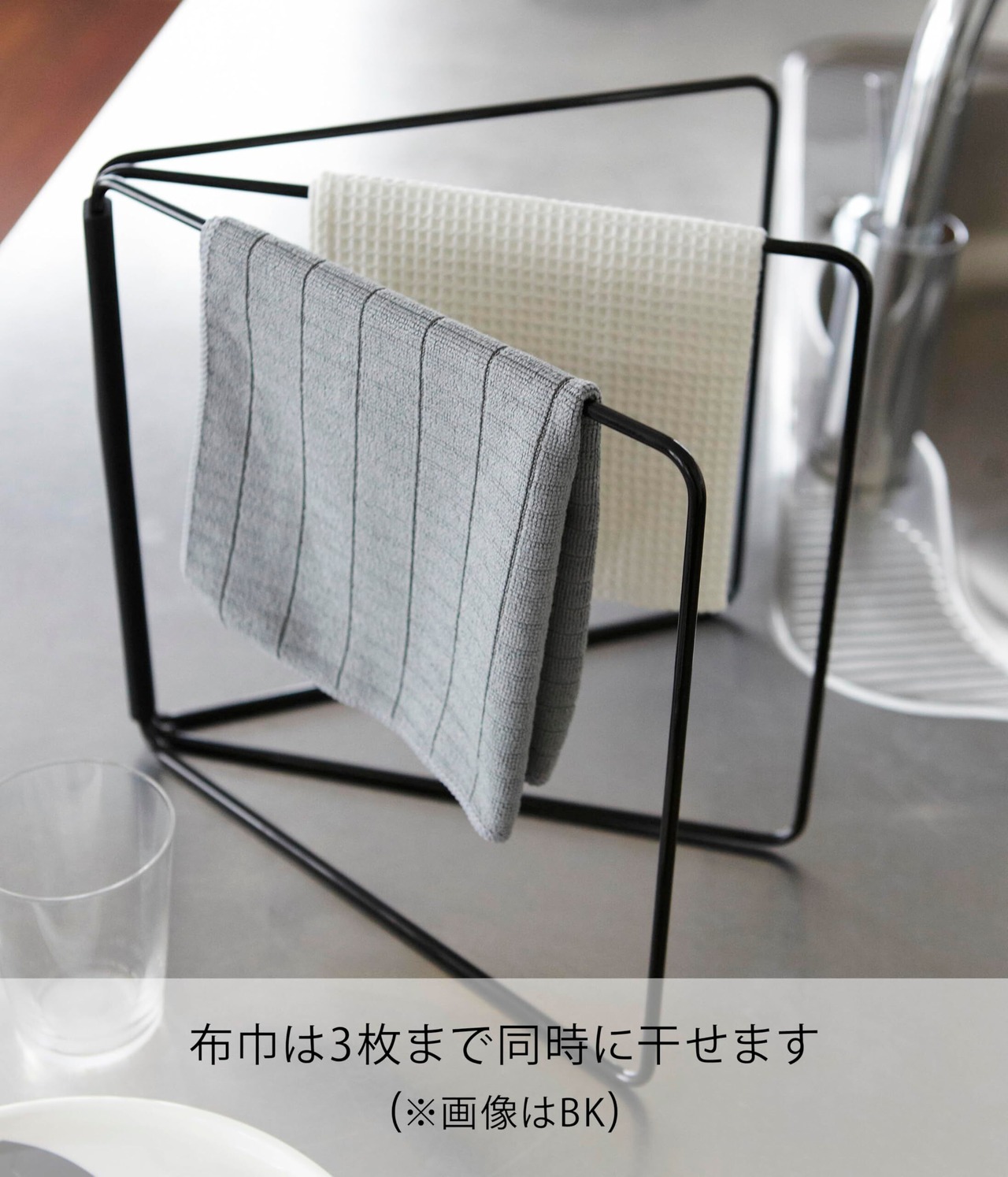 簡単に広げてスリムに折り畳める3枚掛けの布巾ハンガー!