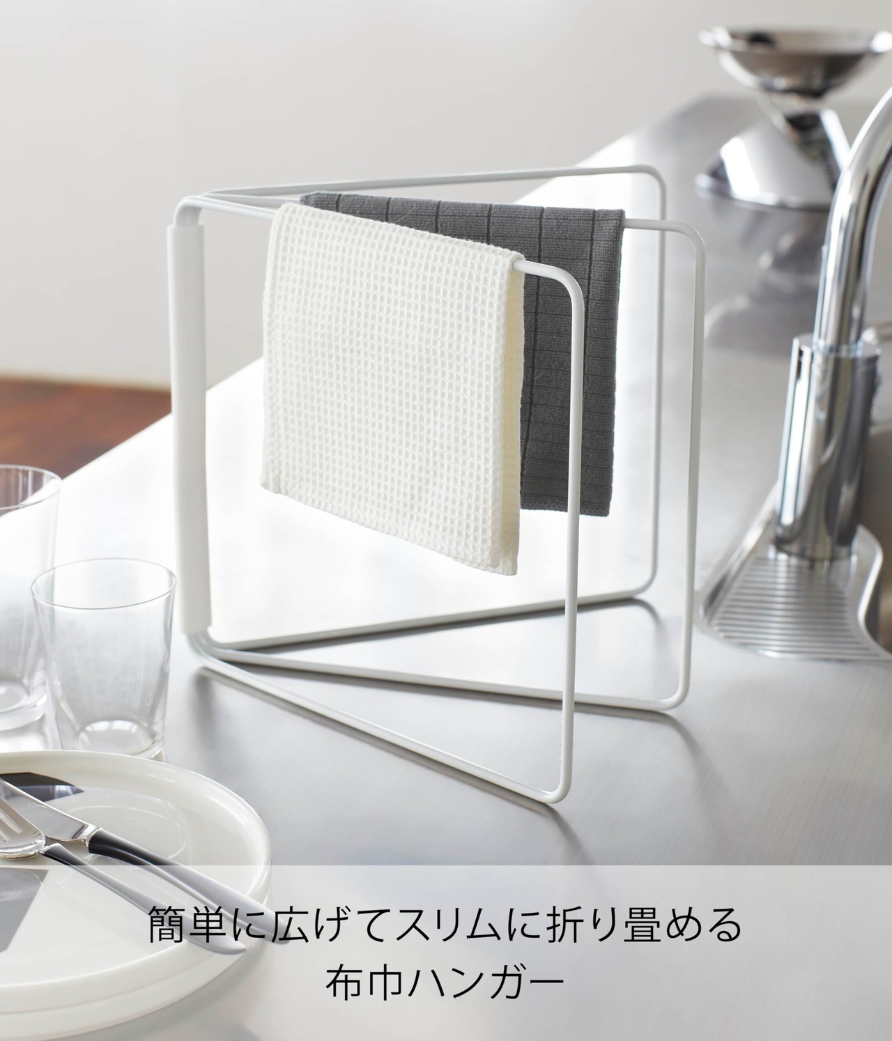 山崎実業(Yamazaki) 折り畳み 布巾ハンガー ホワイト 約W27.5~53.5×D2.2~54.5×H25cm タワー tower 布巾かけ スタンド 2787