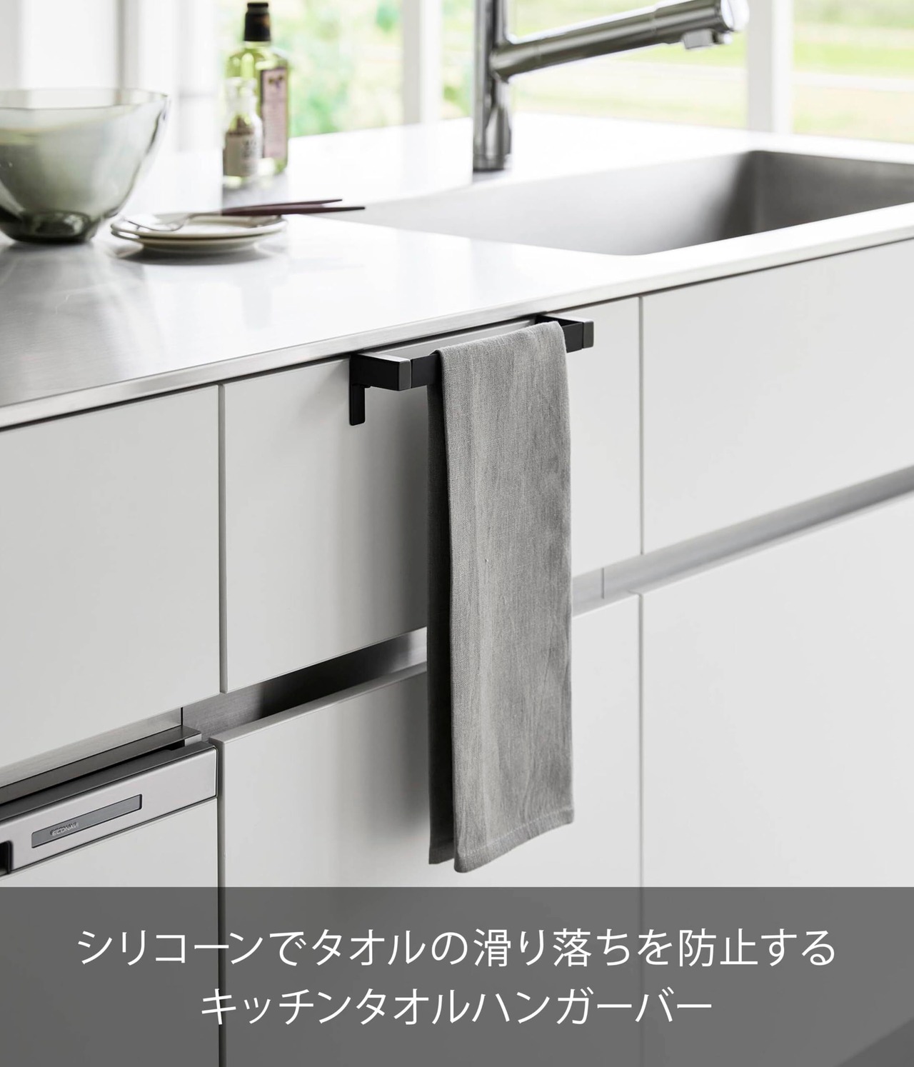 山崎実業(Yamazaki) 滑り落ち防止 キッチンタオルハンガーバー ブラック W21.3×D5.3~8.5×H5cm タワー tower タオル掛け タオルハンガー 1809