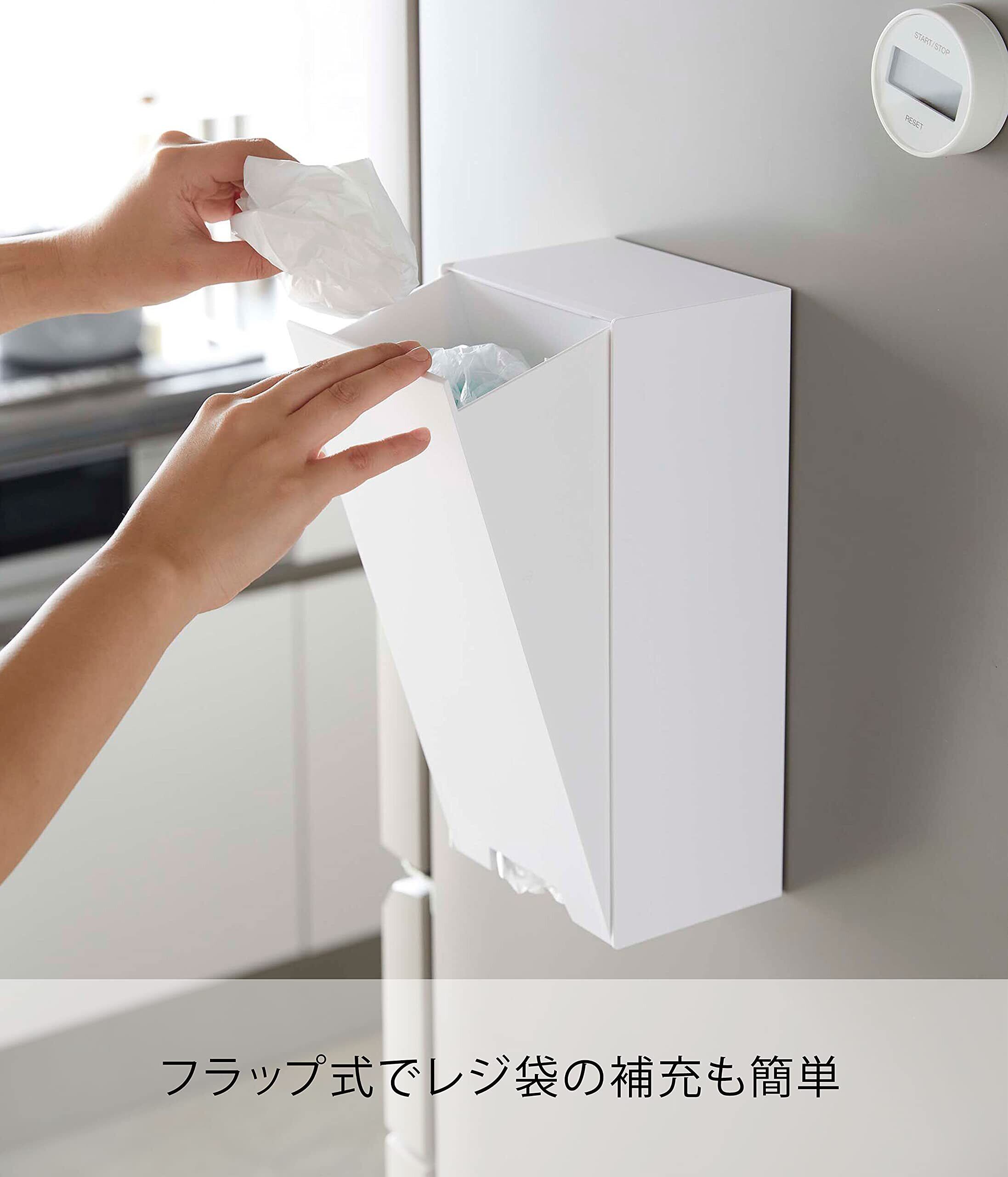 強力マグネットで冷蔵庫の側面がレジ袋の収納スペースに! レジ袋を隠してスマートに収納! 下からサッと取り出せるレジ袋ストッカー! レジ袋の補充も簡単です。