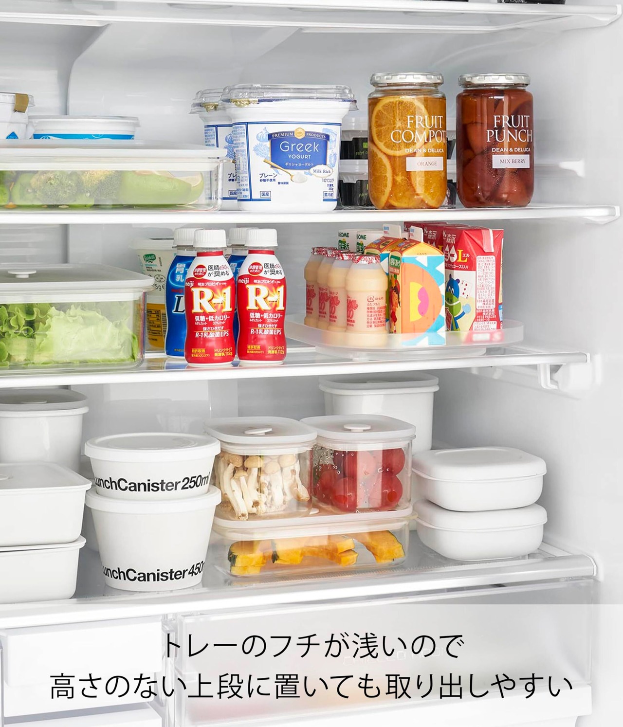 トレーの縁が浅いので、高さのない上段に置いても取り出しやすく便利です。