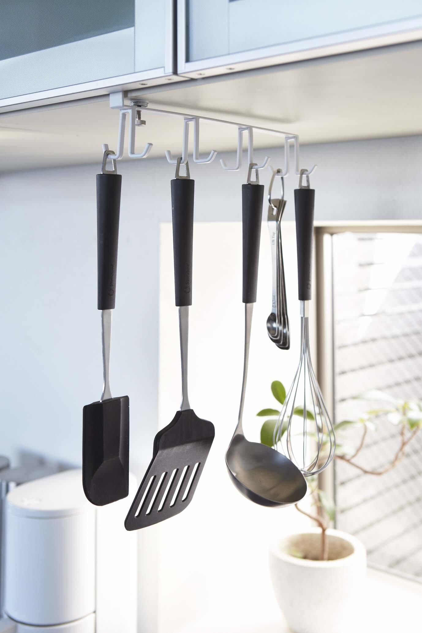 吊り戸棚に簡単取り付けのキッチンツールフック。ネジでしっかり固定!