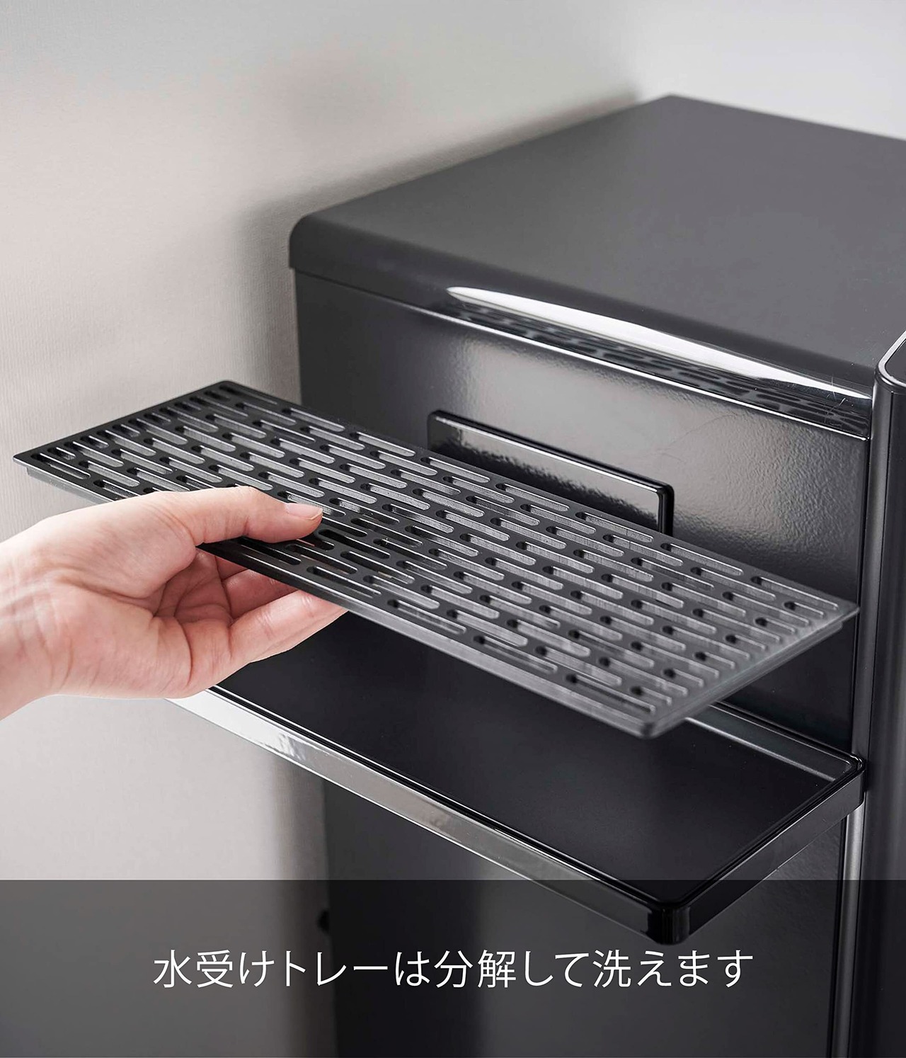 山崎実業(Yamazaki) ウォーターサーバー横 マグネット グラススタンド ブラック 約W31.7×D12.3×H20cm タワー tower 水受けトレー付き 分解して洗える 簡単取り付け 5998