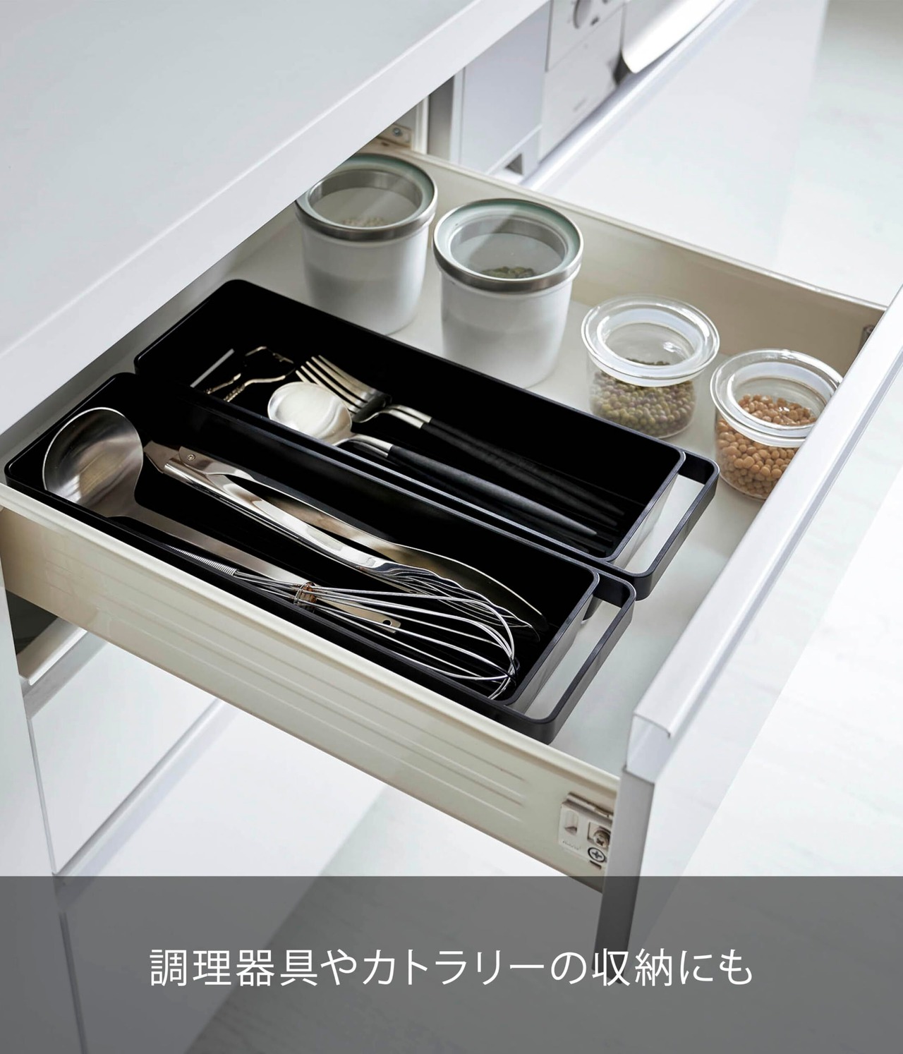 瓶類や小さなキッチン雑貨、カトラリー類などの収納にも便利。